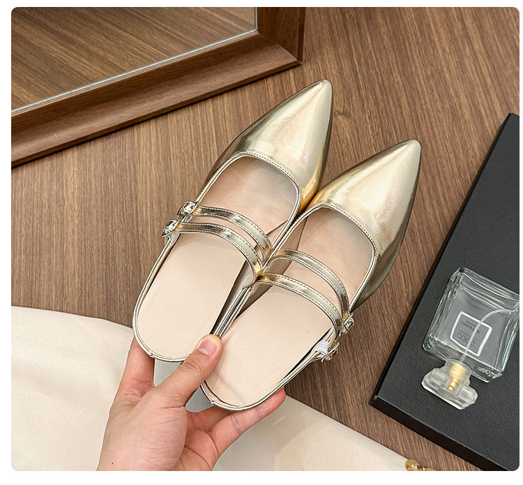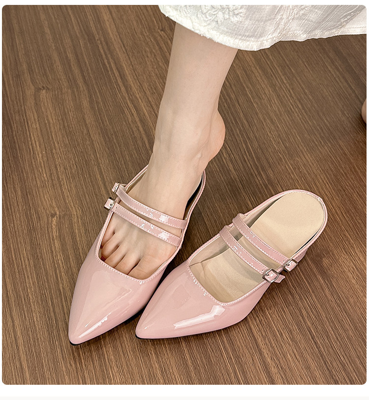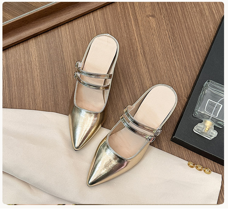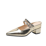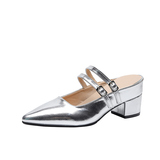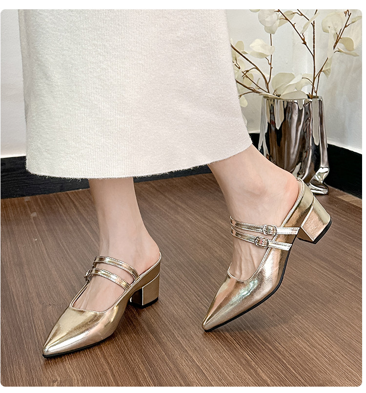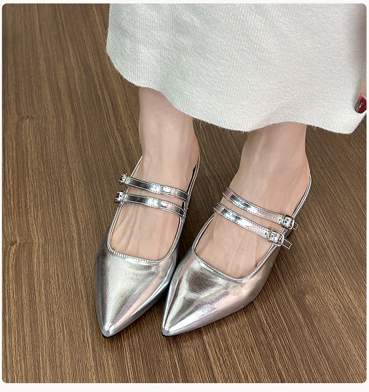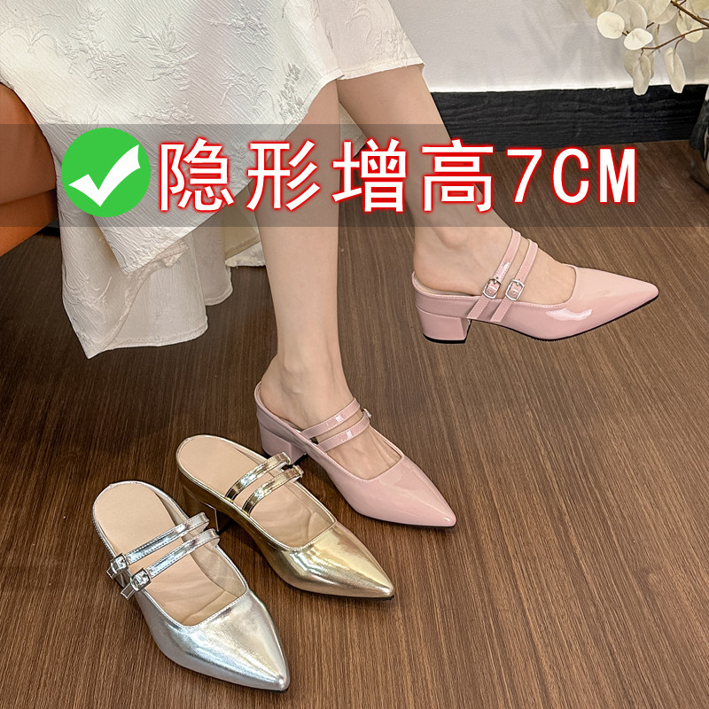 Внутренние увеличивающие серебряные полутапочки Baotou для женщин, лето 2024, новый стиль, французский острый нос, на одной ноге, на толстом каблуке, на высоком каблуке, Мэри Джейн