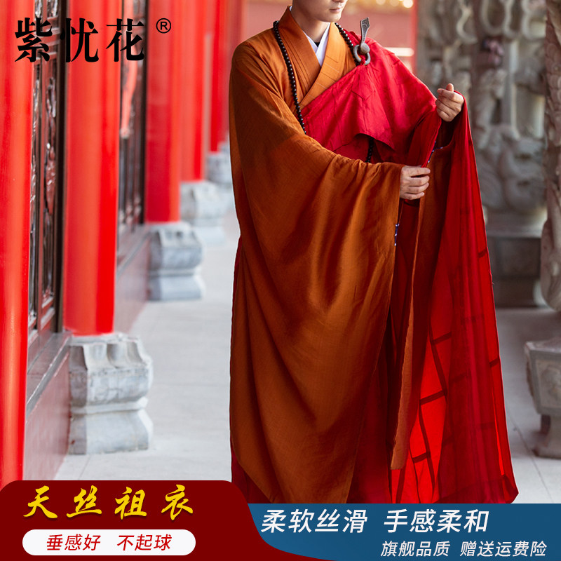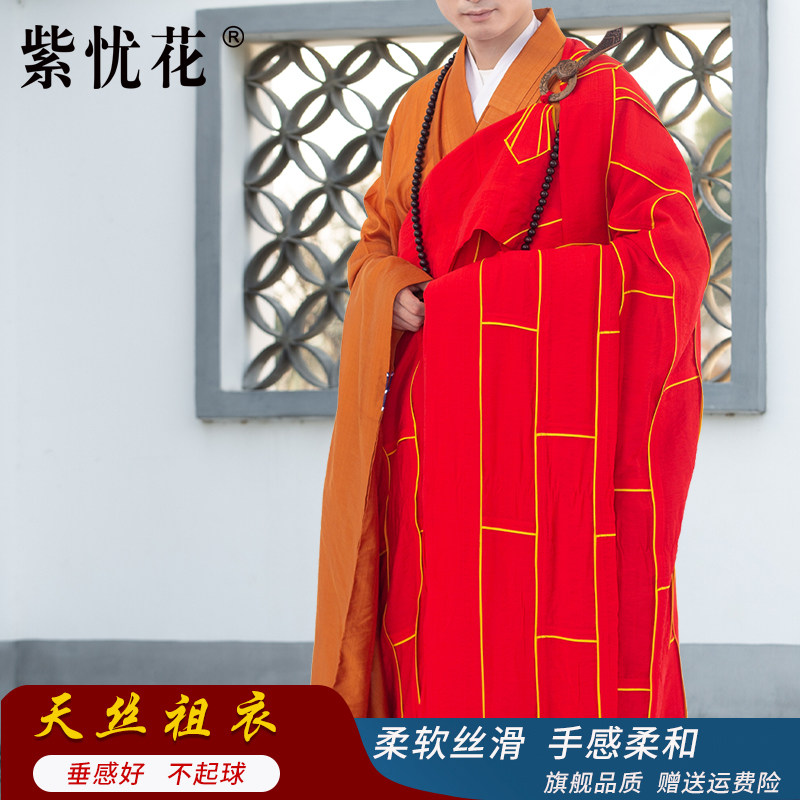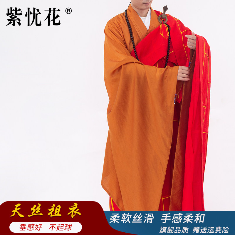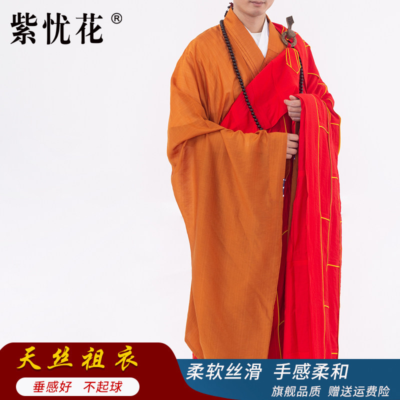 紫忧花 Наследственные одежды из тенселя с золотой оправой, монашеские одежды, настоятель Хайцинской Ассамблеи Дхармы председательствовал на одевании монахов в пятирясные монашеские рясы.