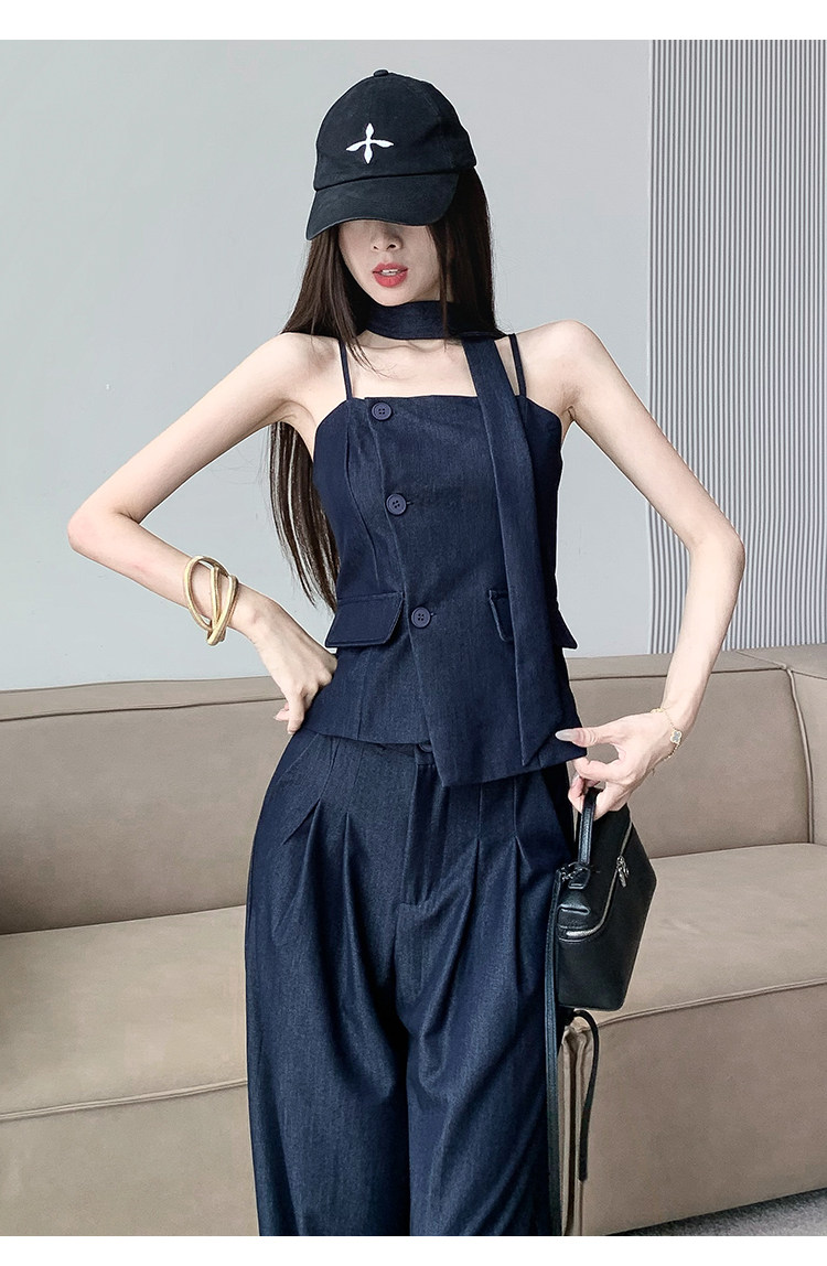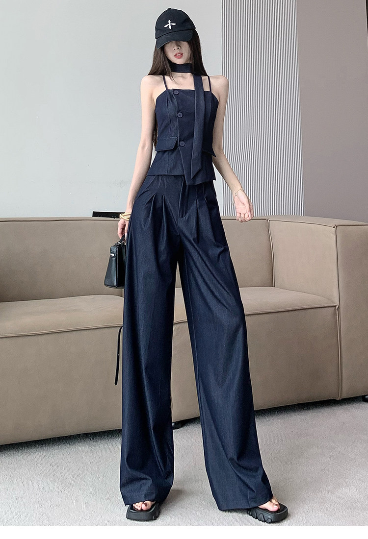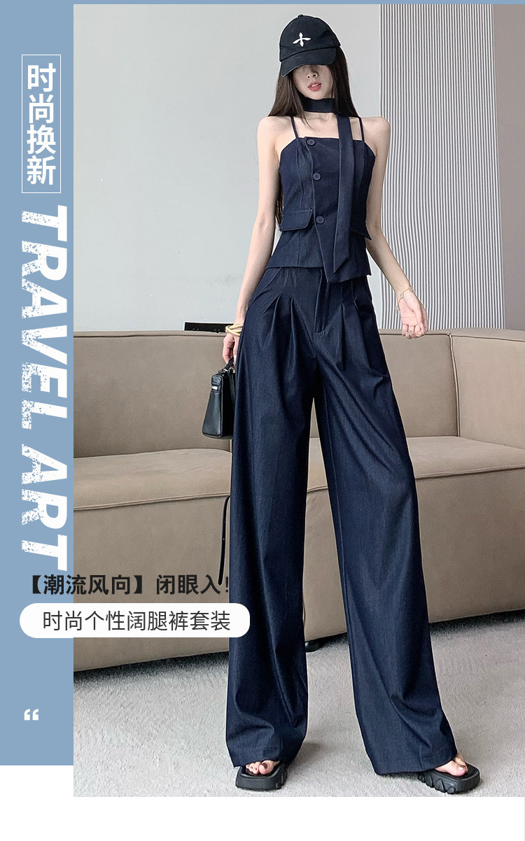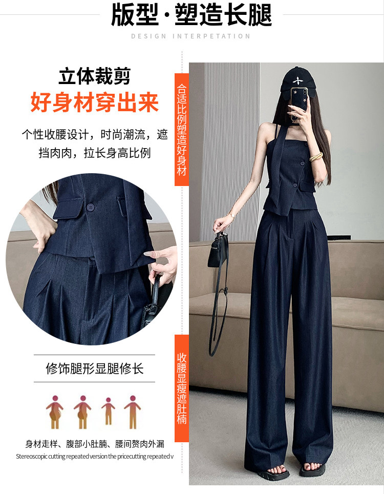 Модный джинсовый комплект, бюстгальтер-топ, приталенный топ с чашечками, штаны