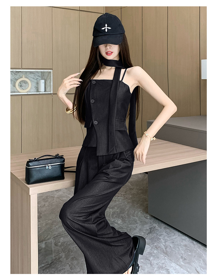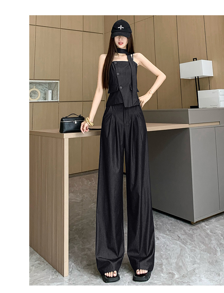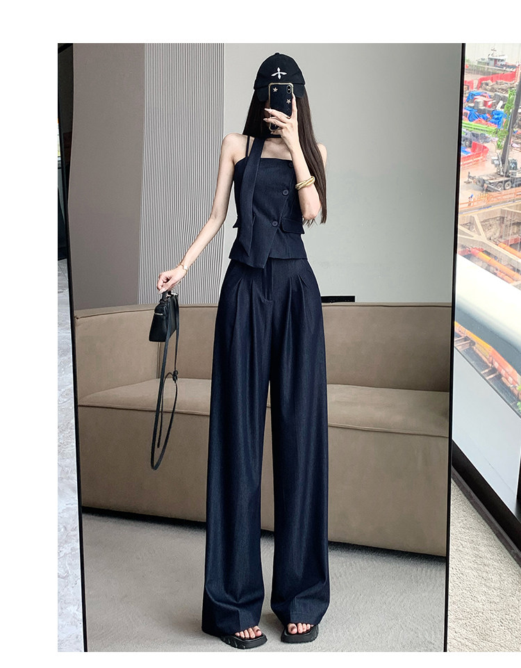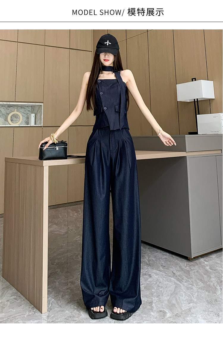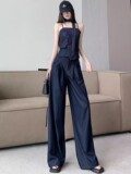 Модный джинсовый комплект, бюстгальтер-топ, приталенный топ с чашечками, штаны