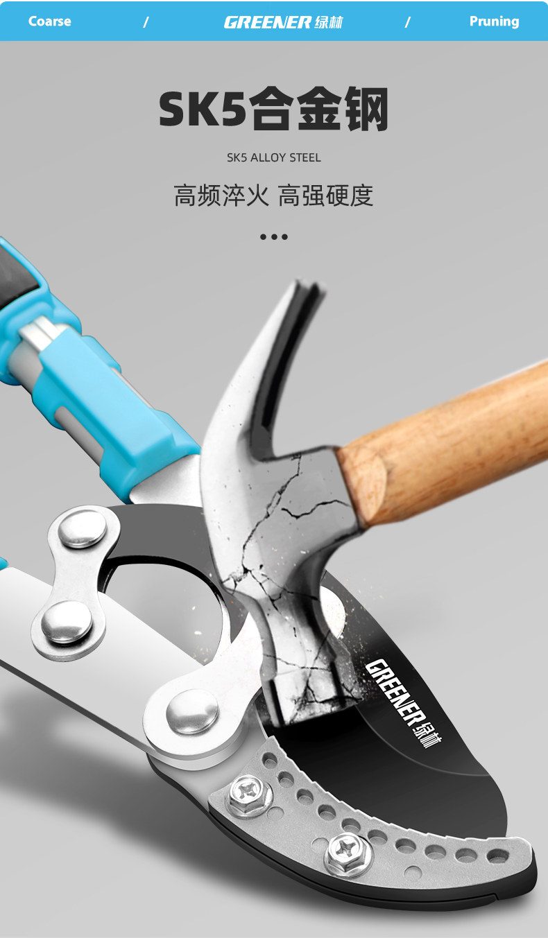 Зеленый лес и грубые ветви, порезы и ветви, ножницы, фруктовые деревья, ветви и энергично разрезать провинциальные садовые режущие ветви для сильной резки