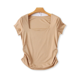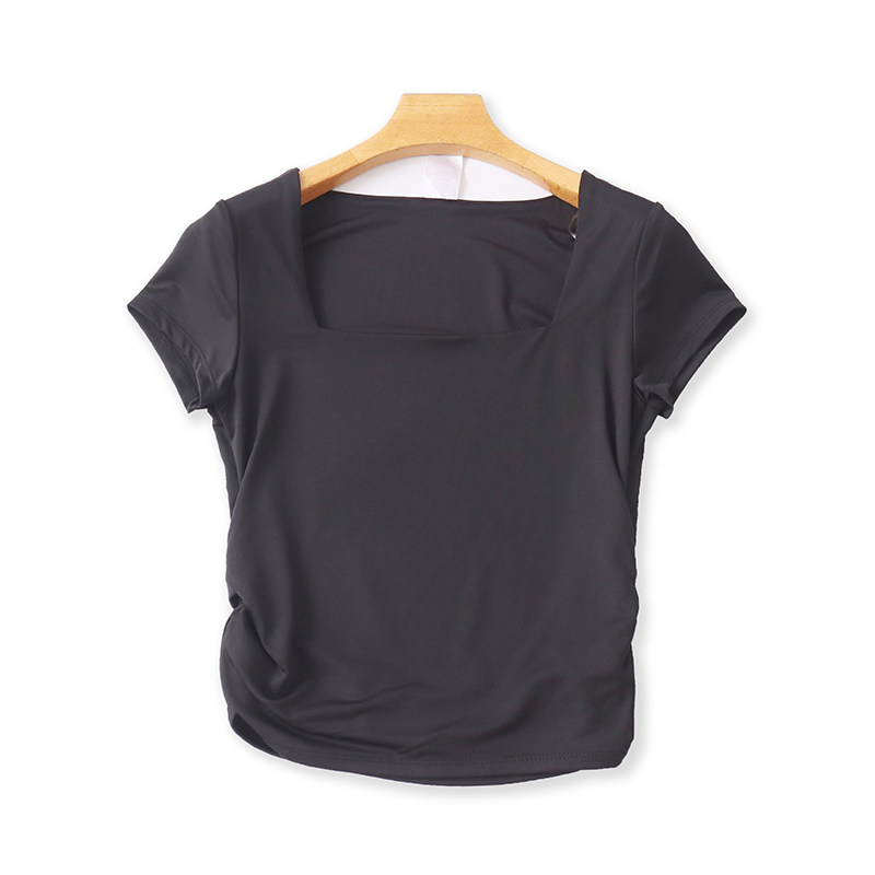 (Трансграничная торговля), летняя базовая модная футболка, квадратный вырез, облегающий крой