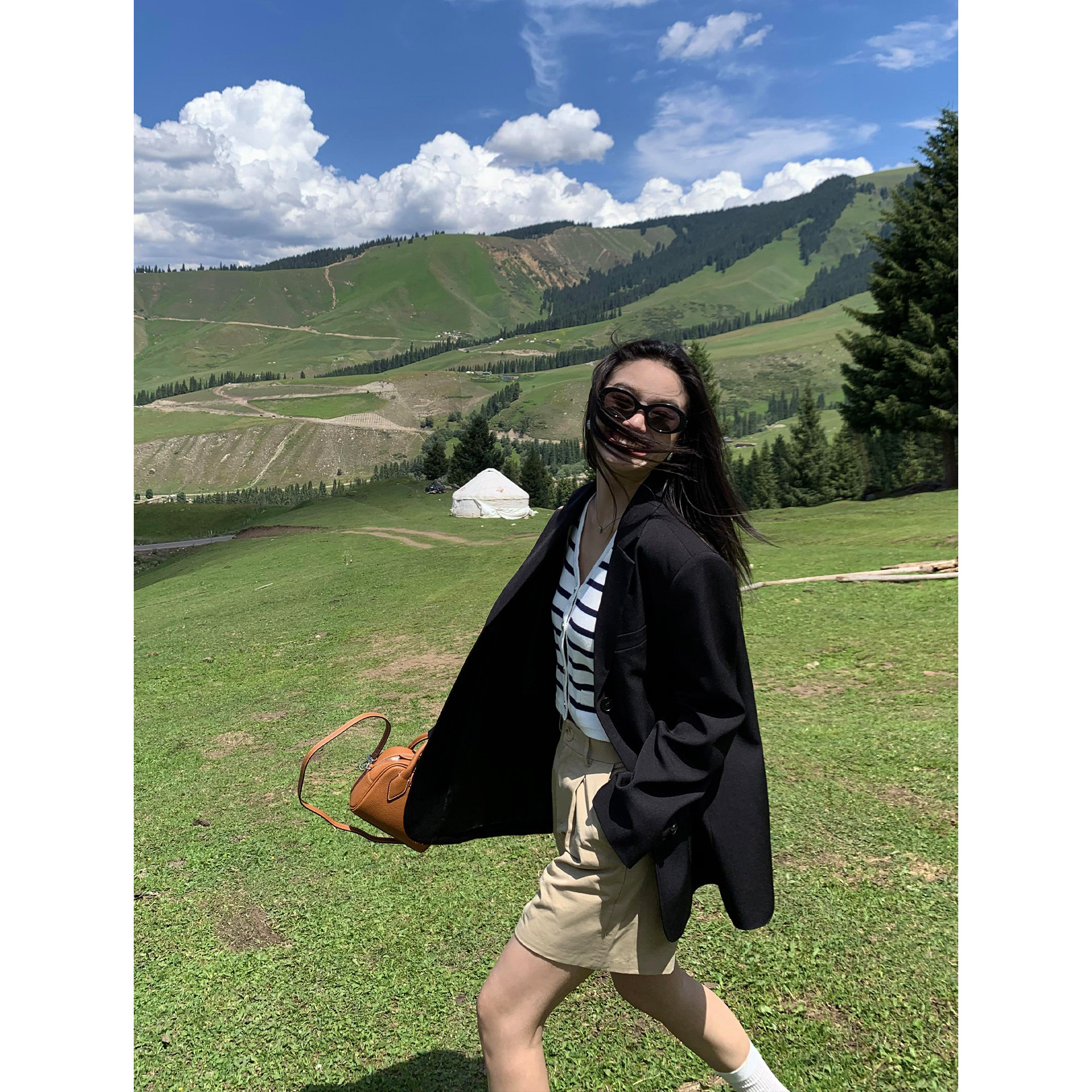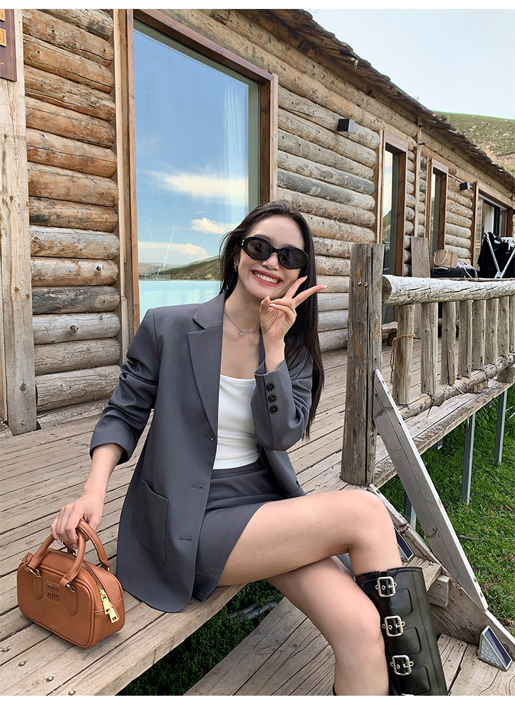 pusumede Осенний дизайнерский пиджак классического кроя с бантиком, тренд сезона