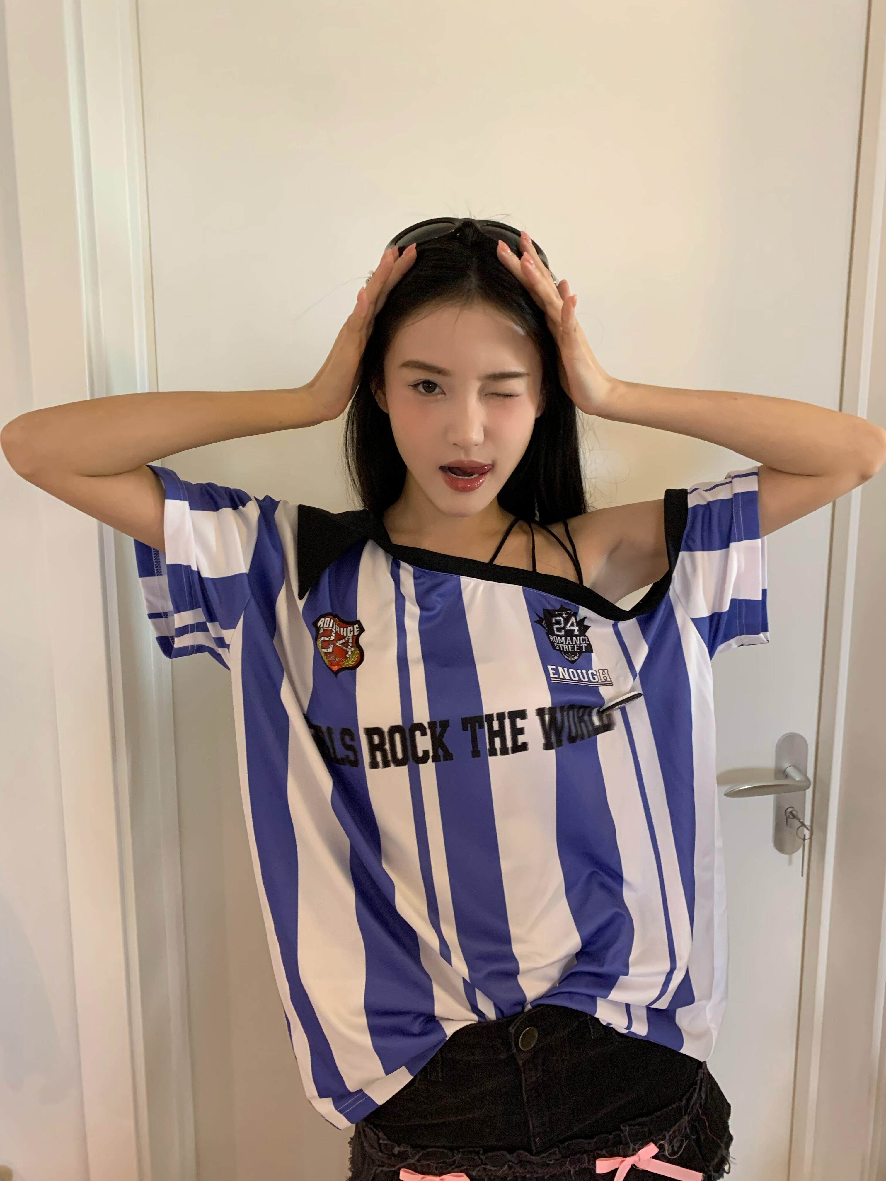 Ретро футбольная форма для отдыха, сексуальная футболка с коротким рукавом, в американском стиле, оверсайз