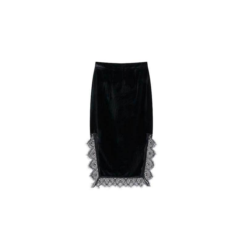 Кружевная приталенная весенняя бархатная сексуальная длинная юбка, большой размер, тренд сезона, свободный прямой крой, высокая талия