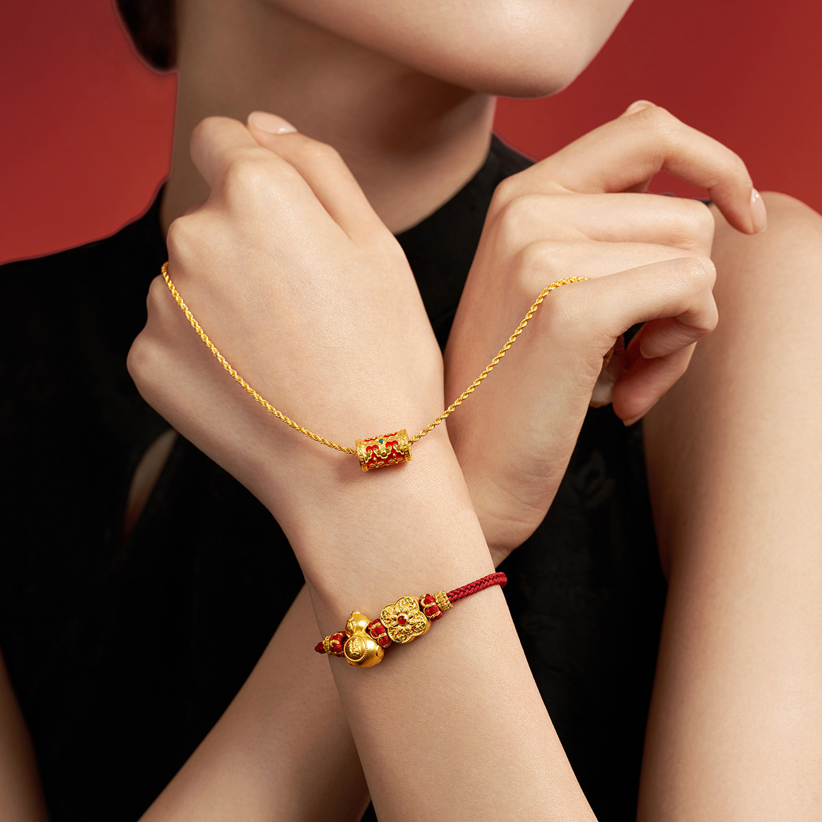 周大福 Защитный амулет, золотой браслет с одной бусиной, подвеска, подарок на день рождения