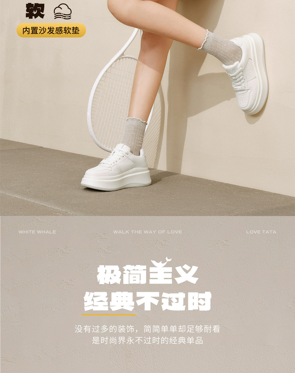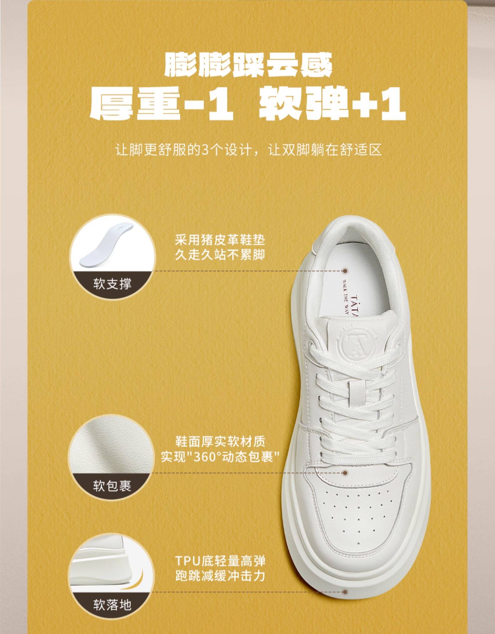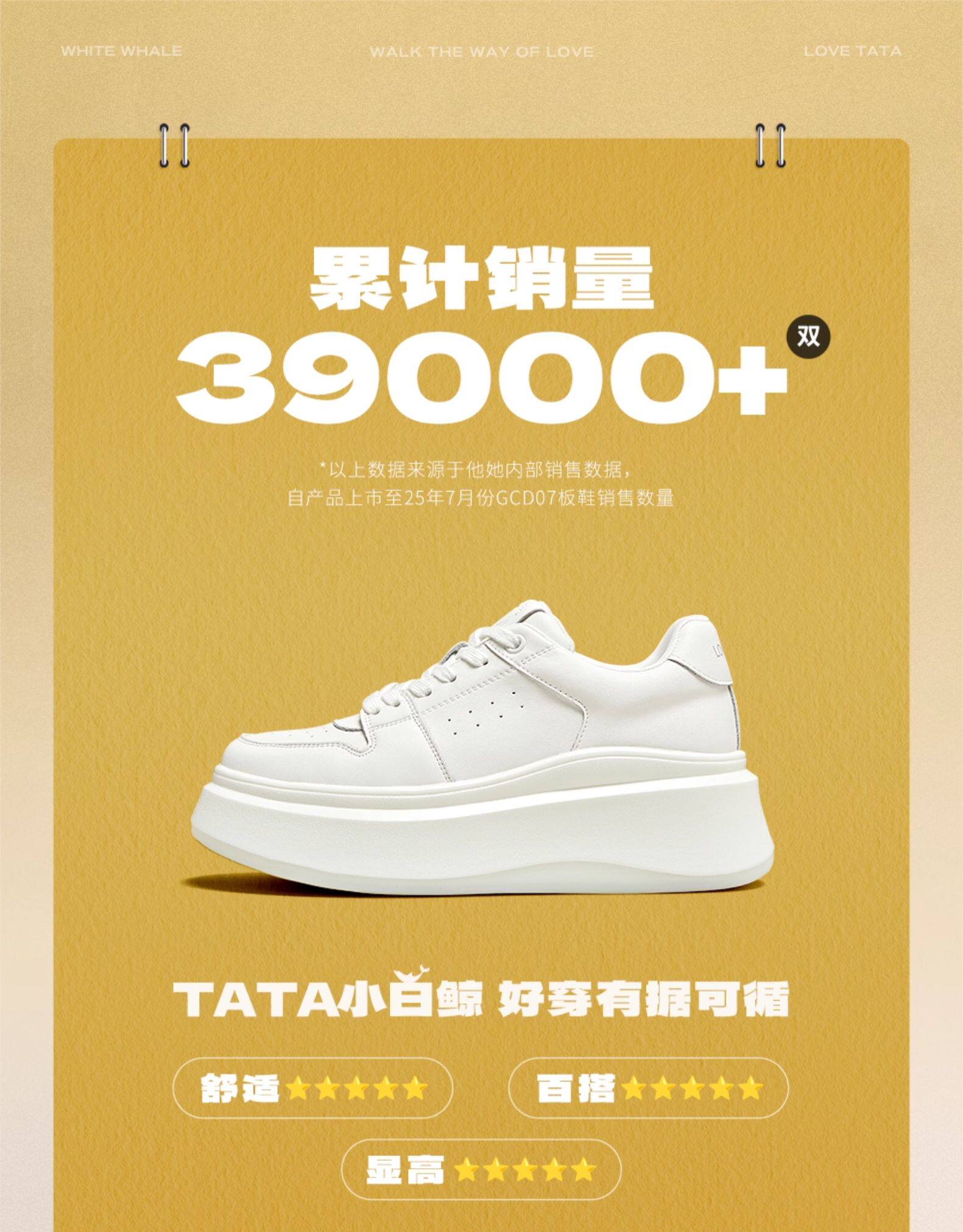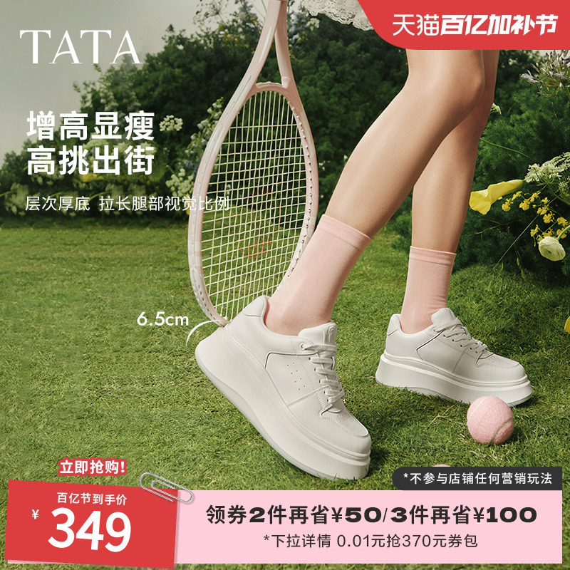 Тата он и она маленькая белая кита Толстая подошва маленькие белые туфли женская высокоэффективная повседневная дышащая ботинка 2025 Новая GCD07AM5