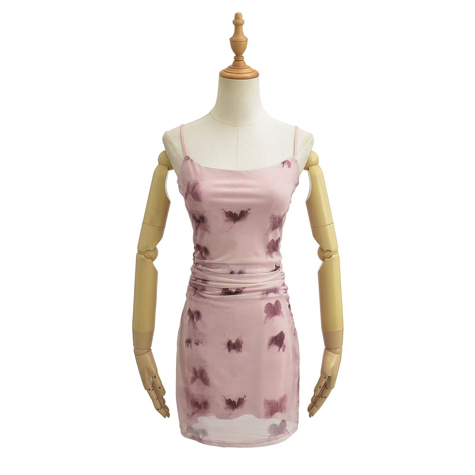 Сексуальный сачок для бабочек, платье-комбинация, платье, европейский стиль, новая коллекция, в цветочек, в обтяжку, с акцентом на бедрах