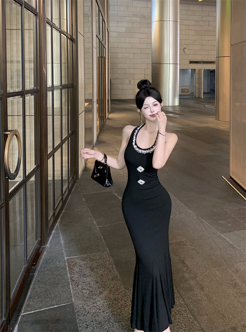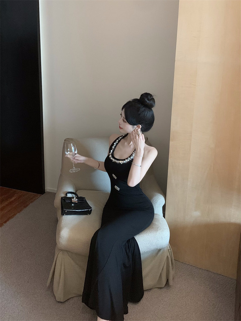 Летнее платье без рукавов, приталенный черный корсет, цветная длинная юбка, французский стиль, с акцентом на бедрах, длина макси