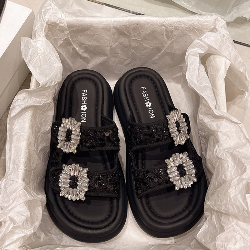 Слайдеры на платформе, летняя пляжная обувь для отдыха, тапочки, 2024 года, двойной ремешок