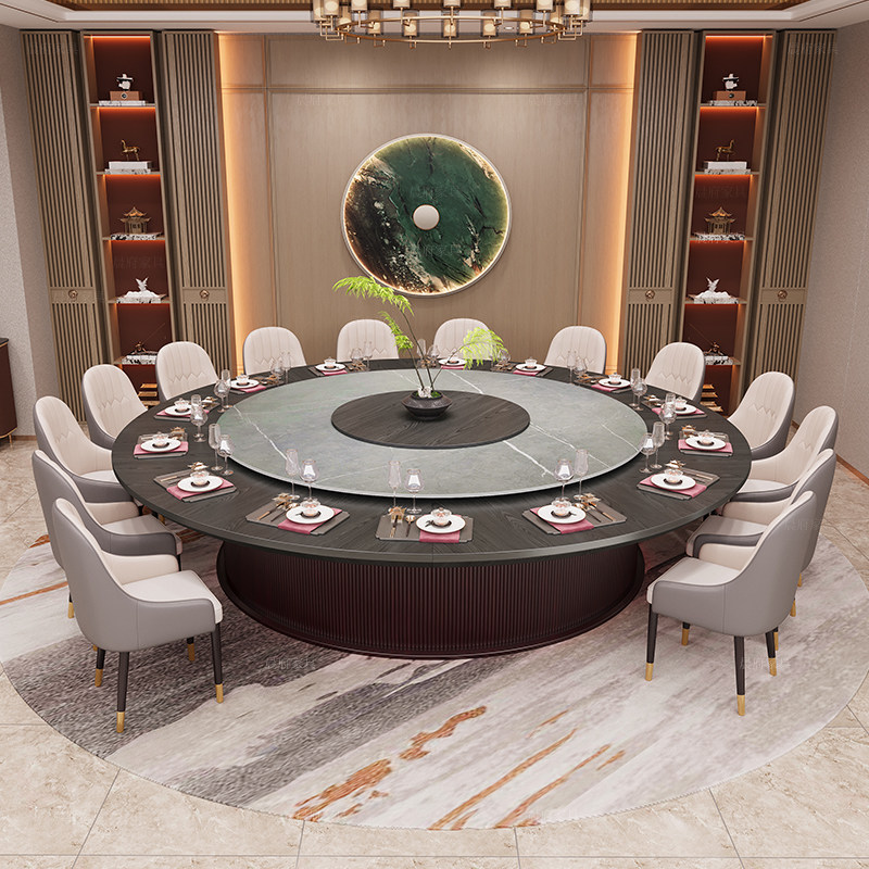 Новый китайский столовый стол с твердым деревом и стул Комбинированный электрический отель Большой круглый столик 3M Ресторанные чартеры с обвоночным столом 20 человек