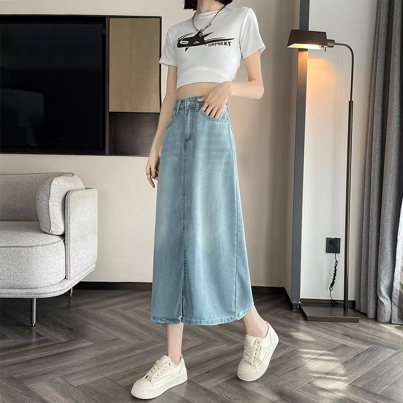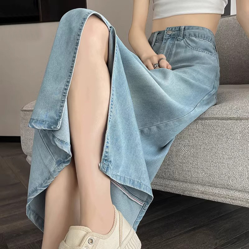 Летняя тонкая джинсовая джинсовая юбка, А-силуэт, свободный крой