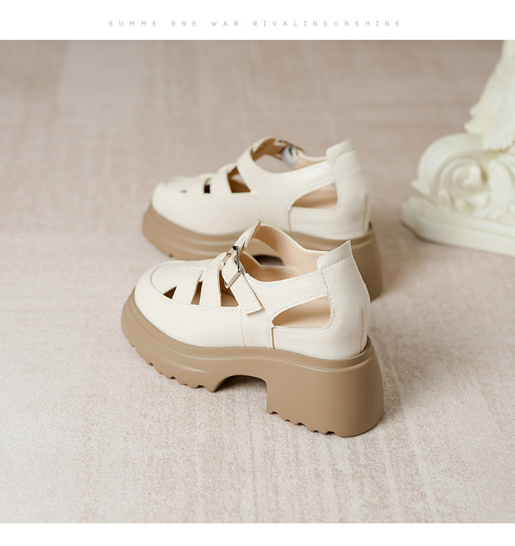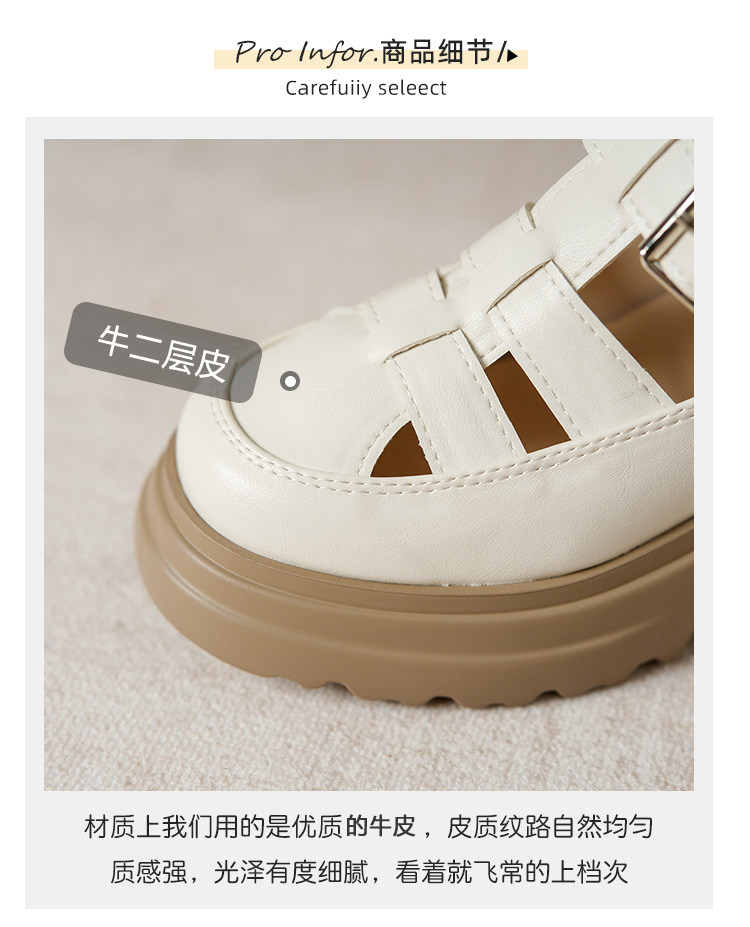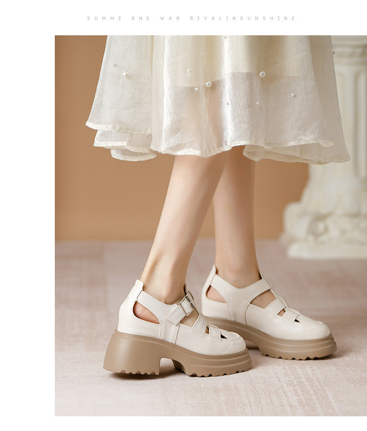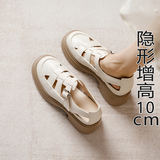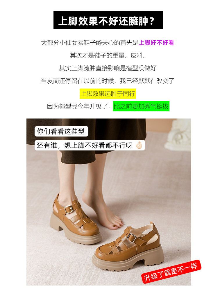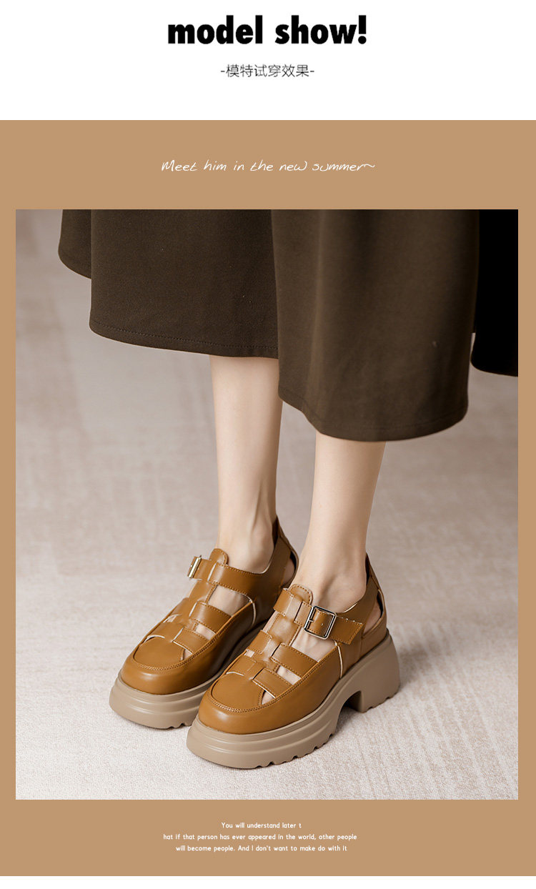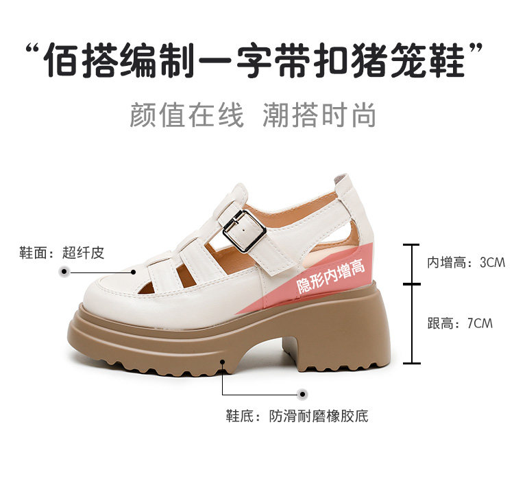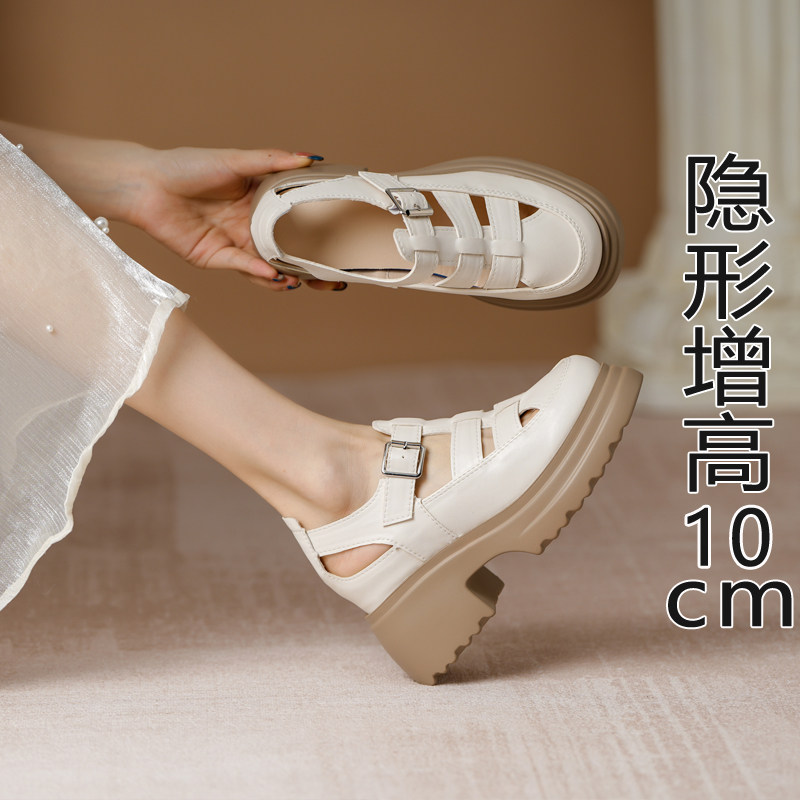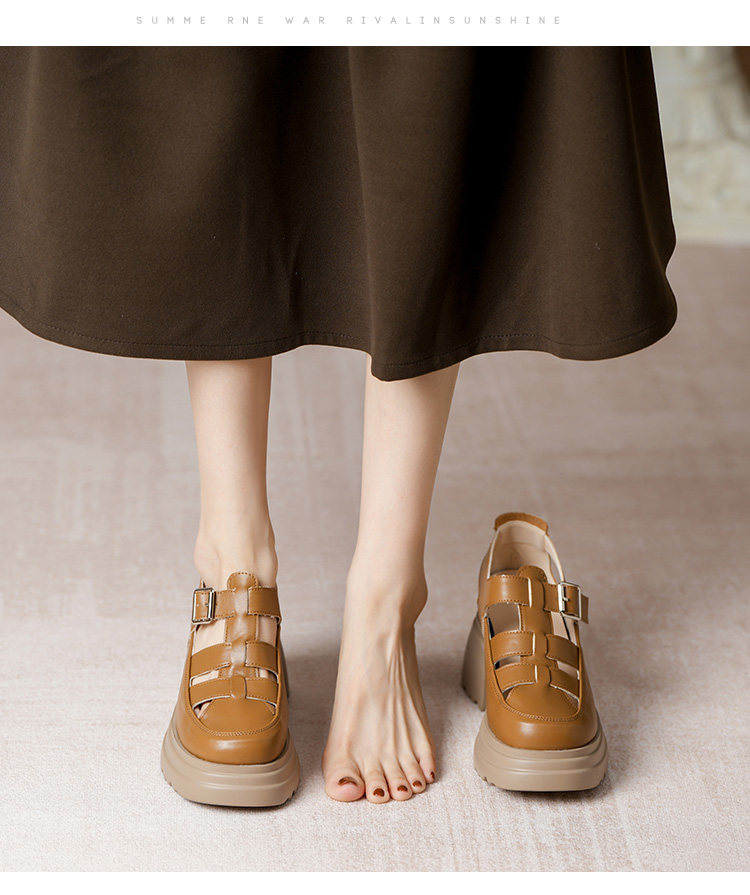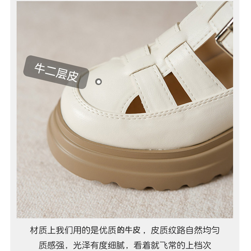 Кожа Baotou Romanles Sandals Женская лето 2024 г. Новая внутренняя высокая женская женская обувь мягкая кожаная полая тканая свиная обувь