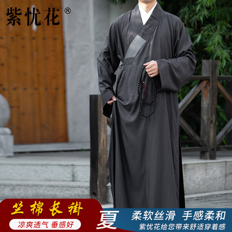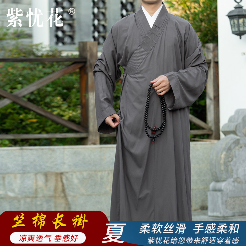 紫忧花 Платье с чистым хлопковым монахом в летних мужчинах и женщинах -монахах короткие сета монахи костюмы монахи костюми
