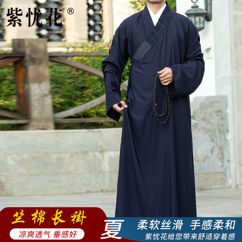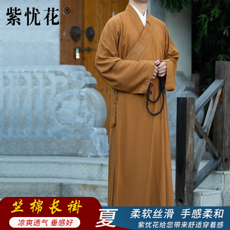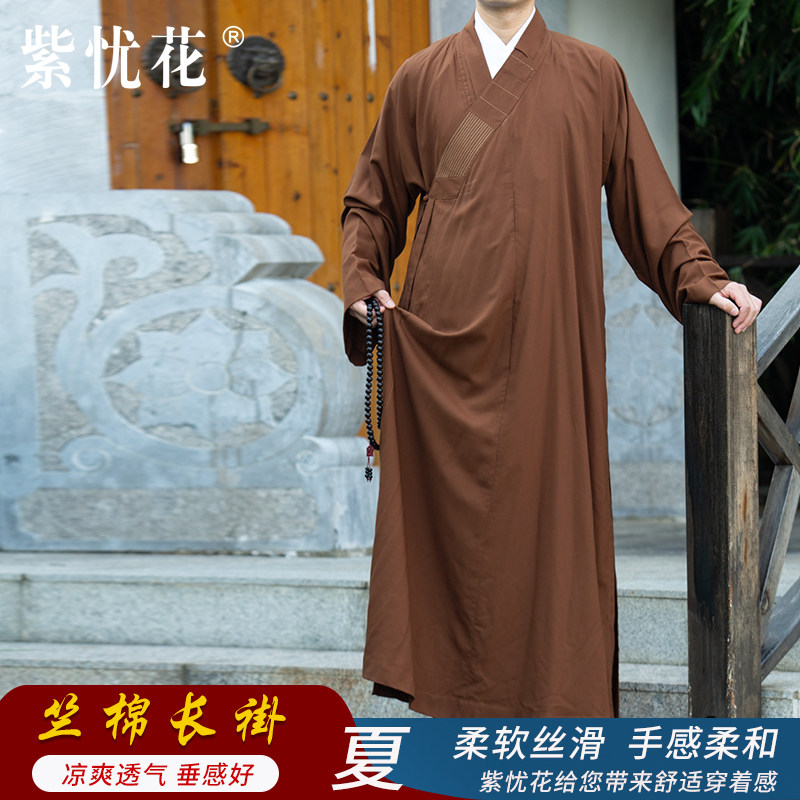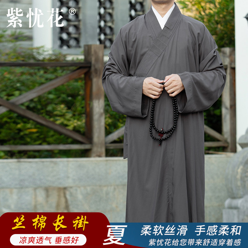 紫忧花 Монашная одежда длинное платье лето мужчины и женщины -монахи монахи монахи длинное платье монахи с одеждой тонкая и дышащая
