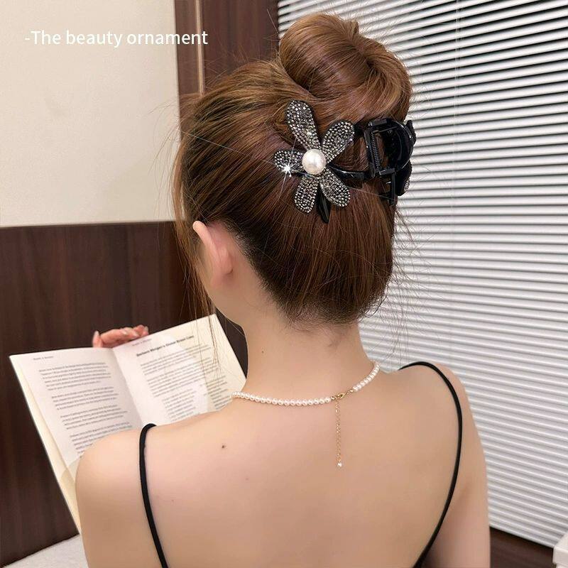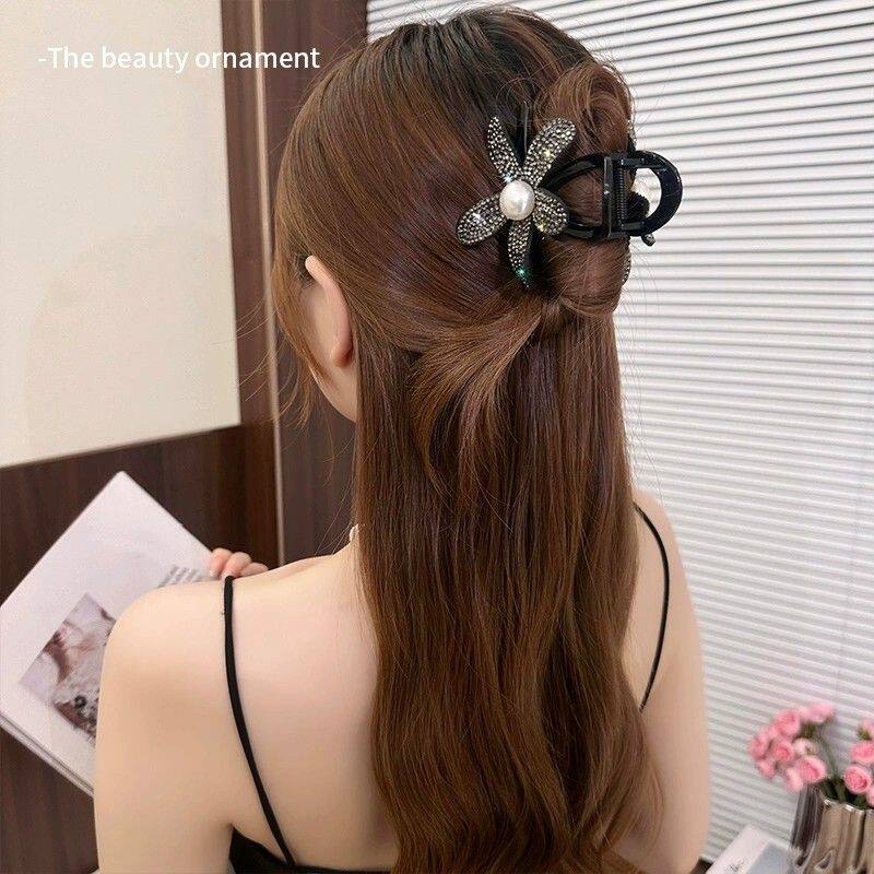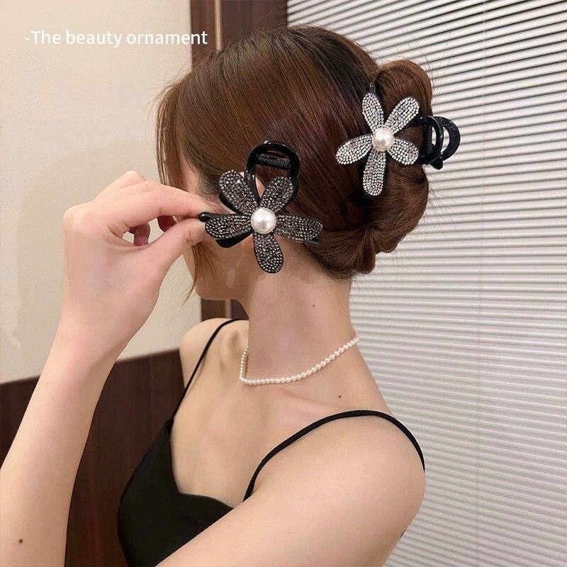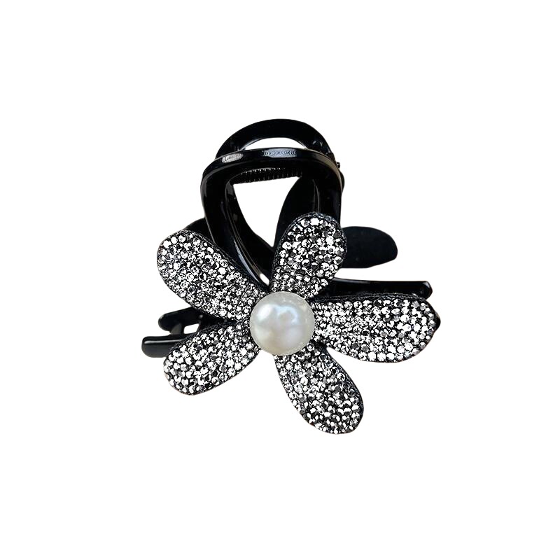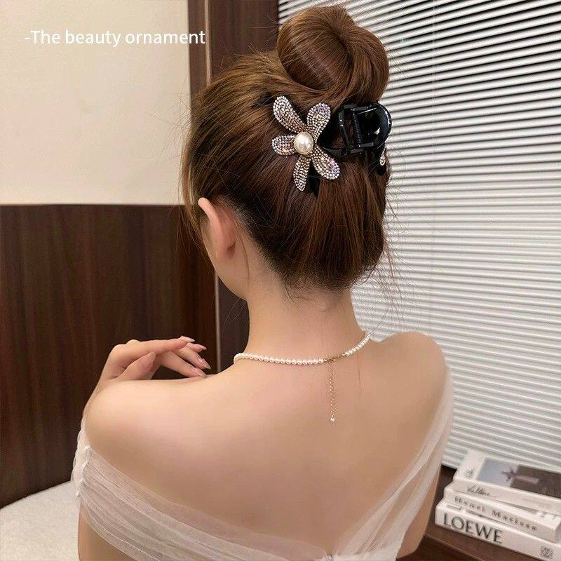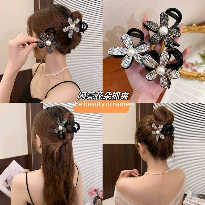 Заколка-крабик, акула, заколка для волос, хвостик, аксессуар для волос, 2024 года, новая коллекция, в цветочек, изысканный стиль, легкий роскошный стиль, инкрустировано бриллиантами, французский стиль