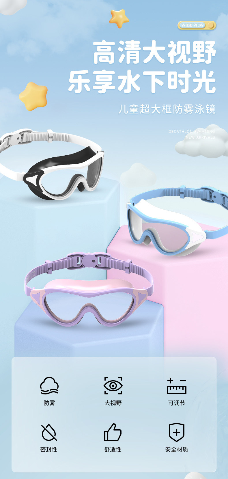 Decathlon, детские водонепроницаемые очки для плавания без запотевания стекол