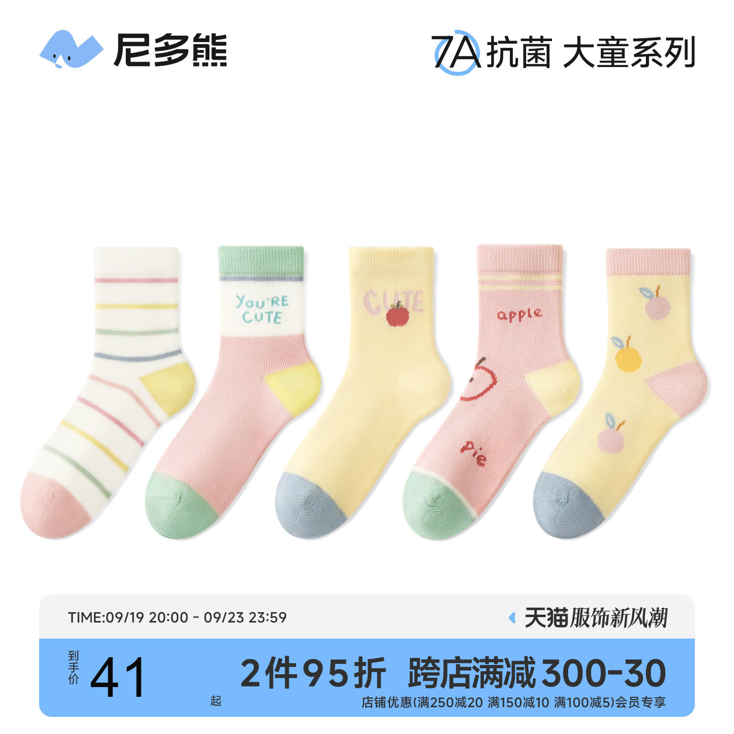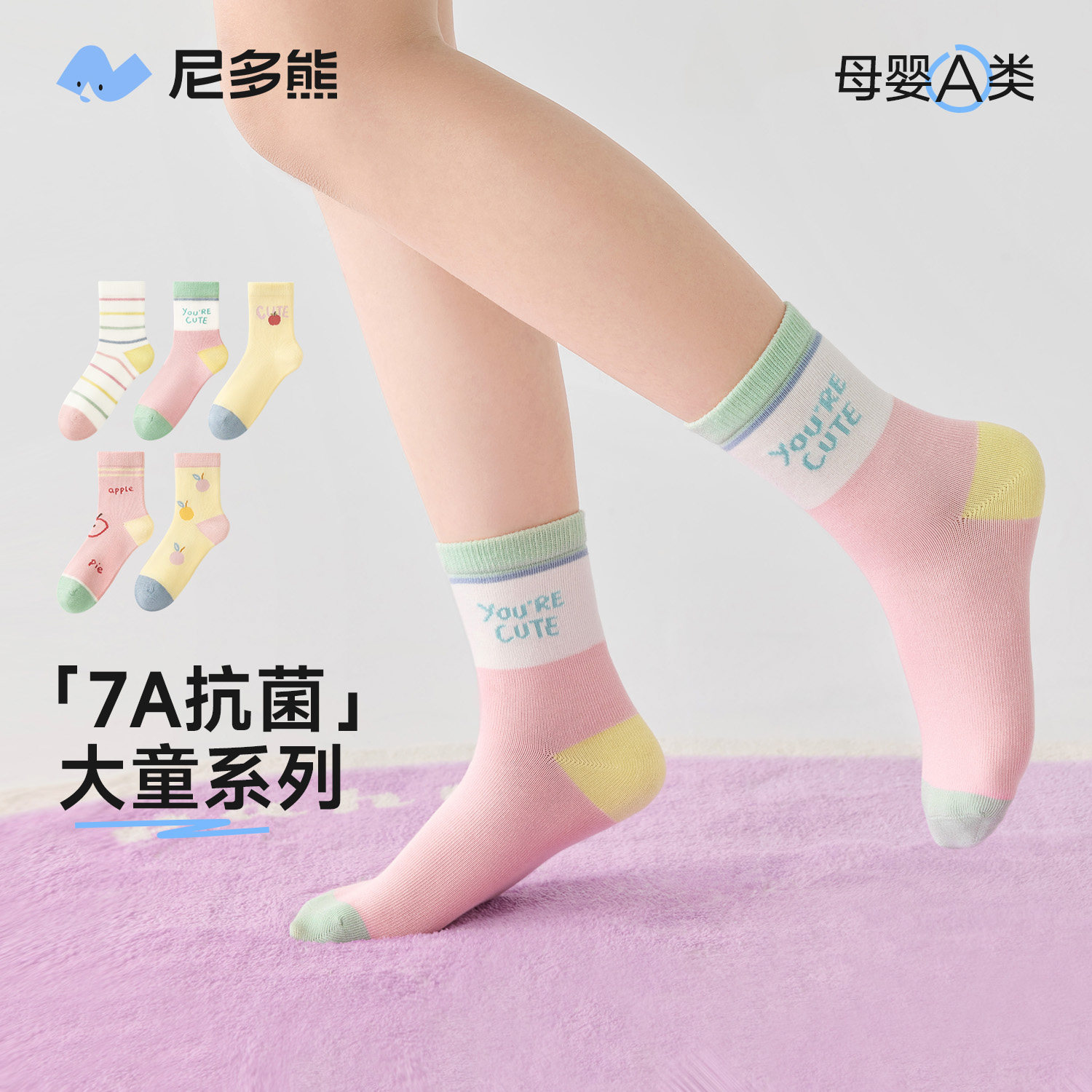 尼多熊 Детские демисезонные антибактериальные носки для школьников и студентов, подходят для подростков