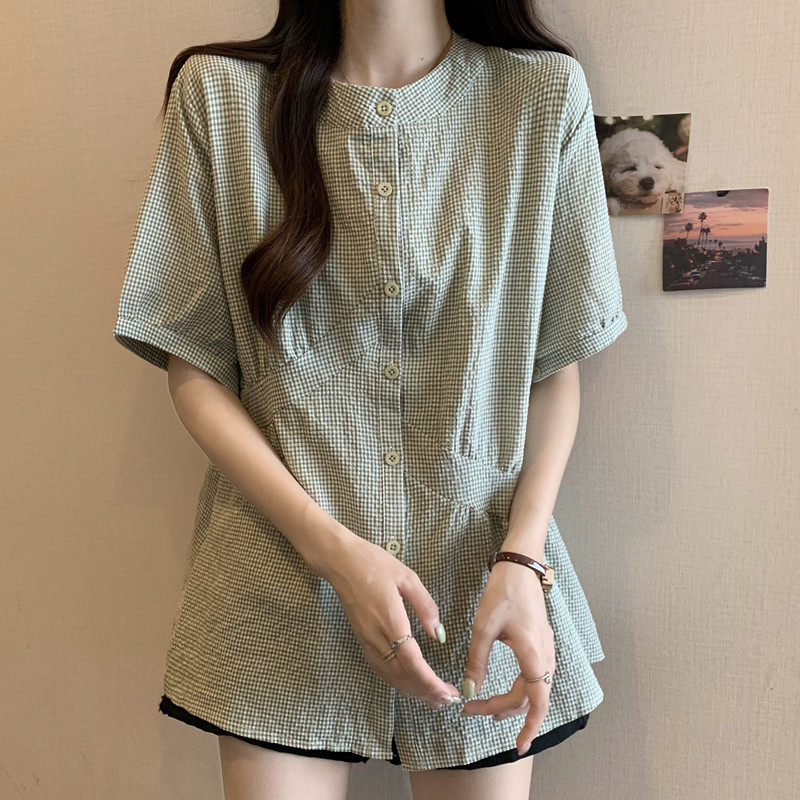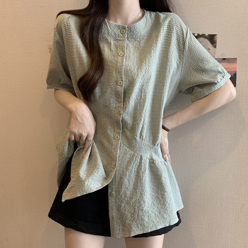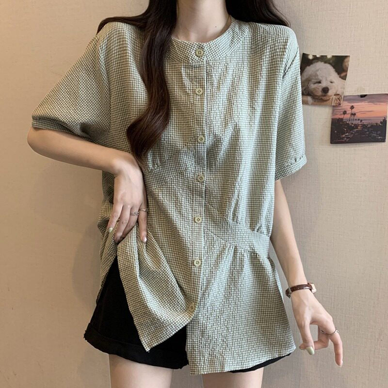 Дизайнерская зеленая цветная летняя рубашка, длинный корсет, тренд сезона, большой размер, средней длины