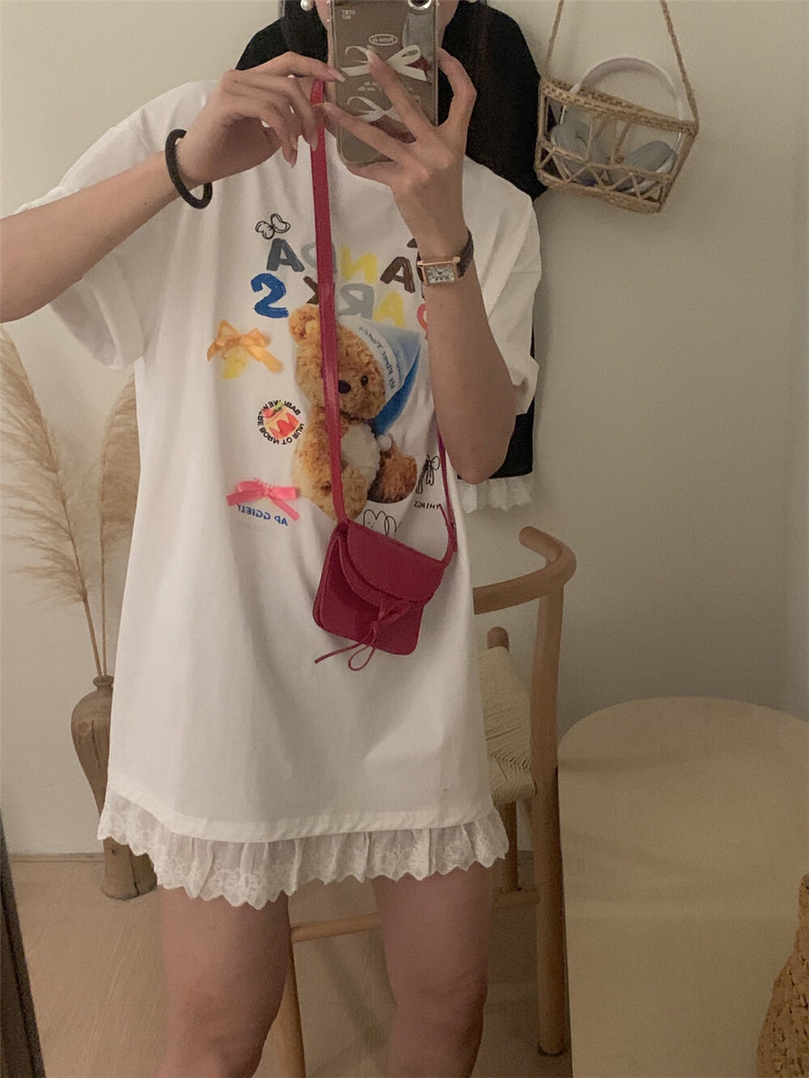 Летняя мультяшная кружевная дизайнерская футболка с коротким рукавом, с медвежатами, оверсайз