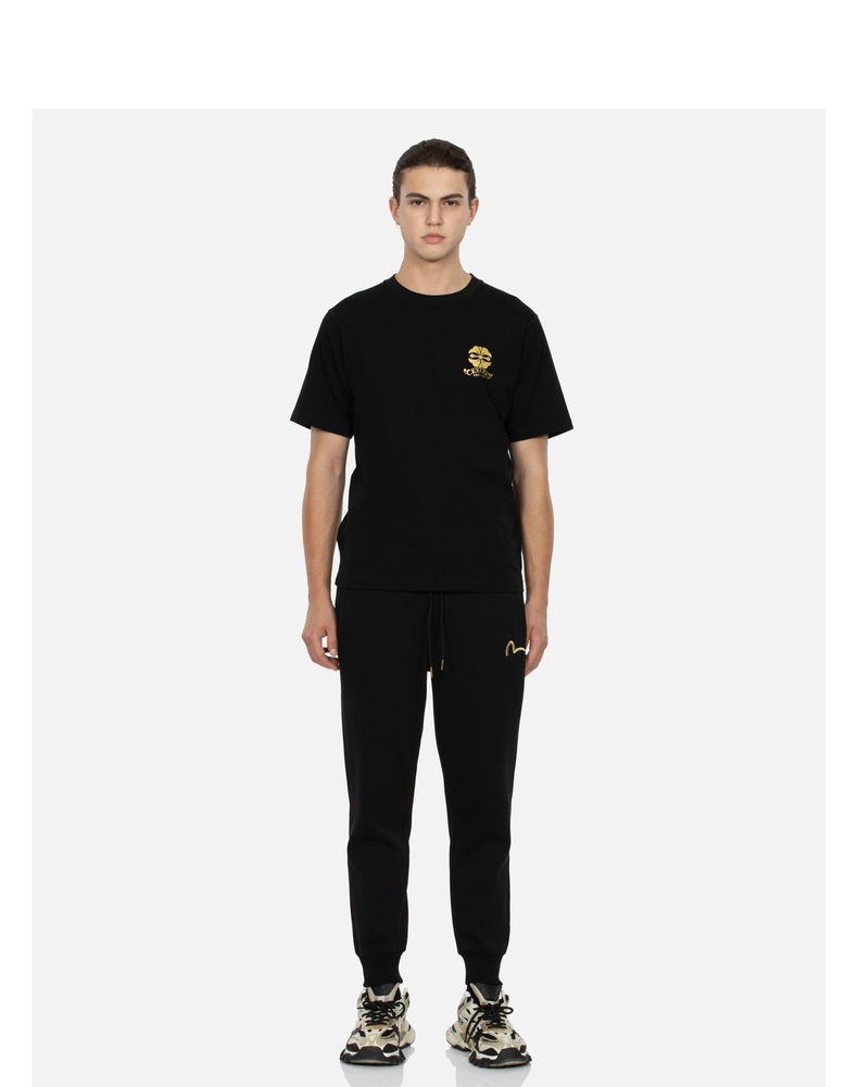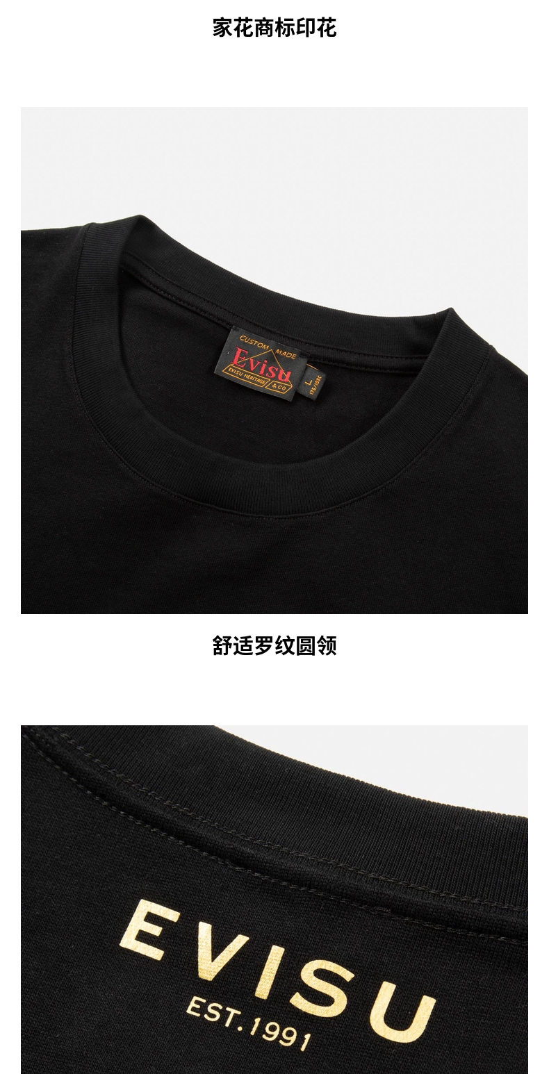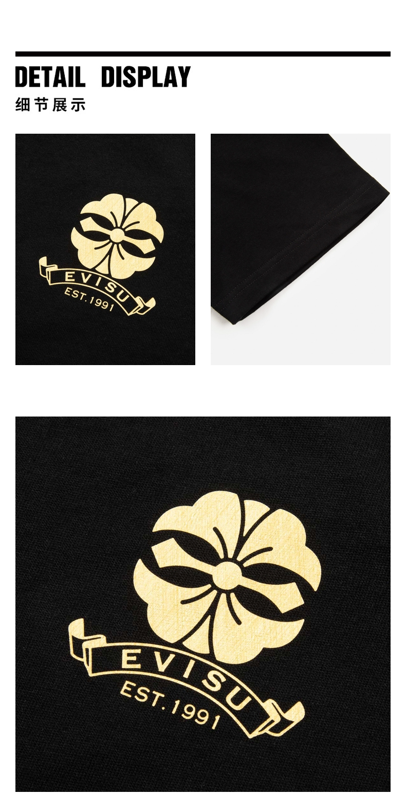 [Стиль знаменитостей] EVISU Мужская модная футболка с цветочным принтом и логотипом горячего тиснения
