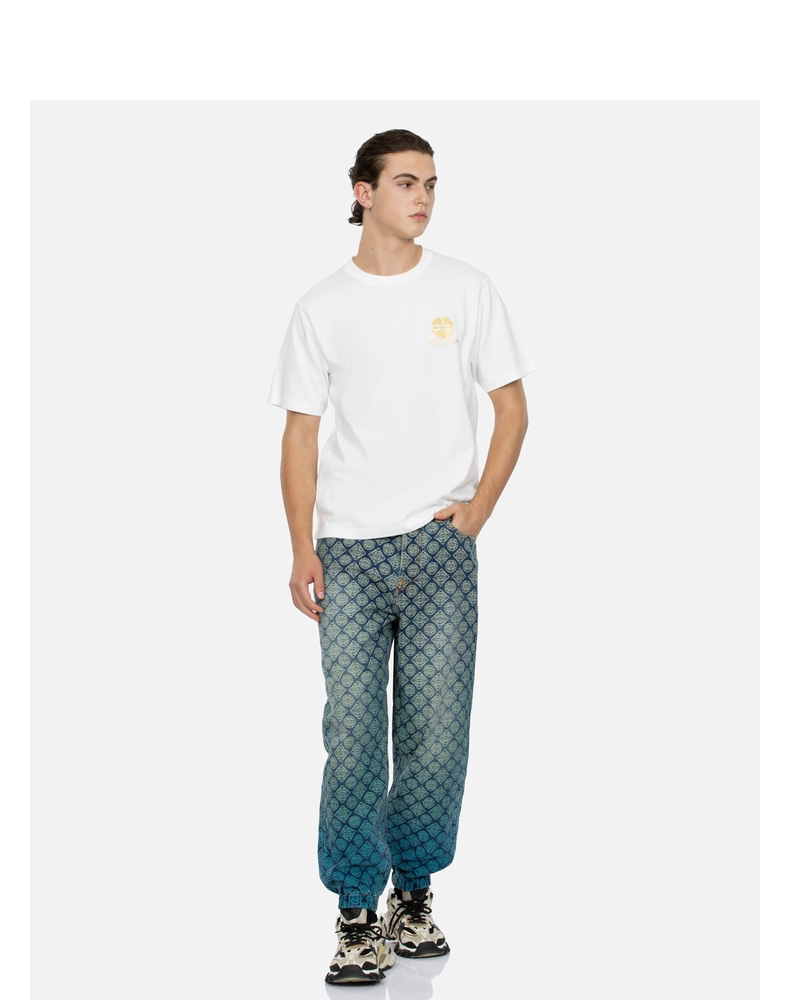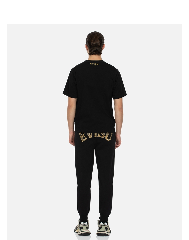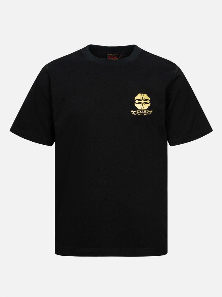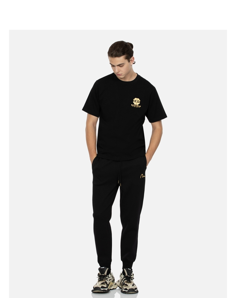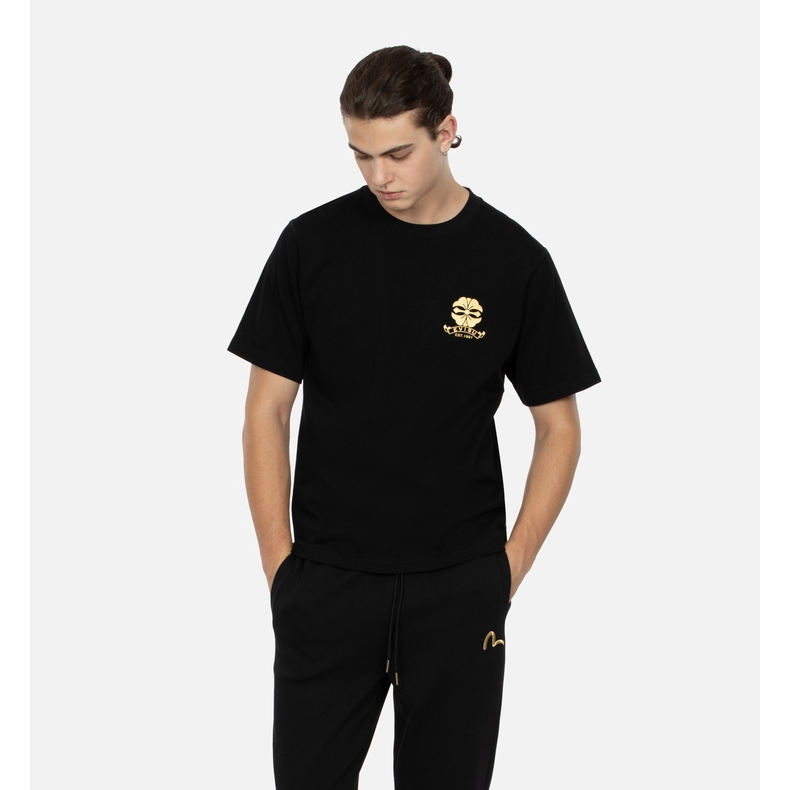 [Стиль знаменитостей] EVISU Мужская модная футболка с цветочным принтом и логотипом горячего тиснения