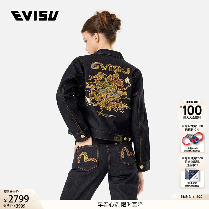 EVISU2024 осенне-зимняя новая женская парчовая джинсовая куртка розового цвета 2EAHTW4DJ4004XXDN