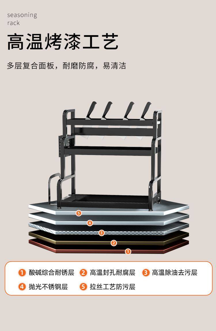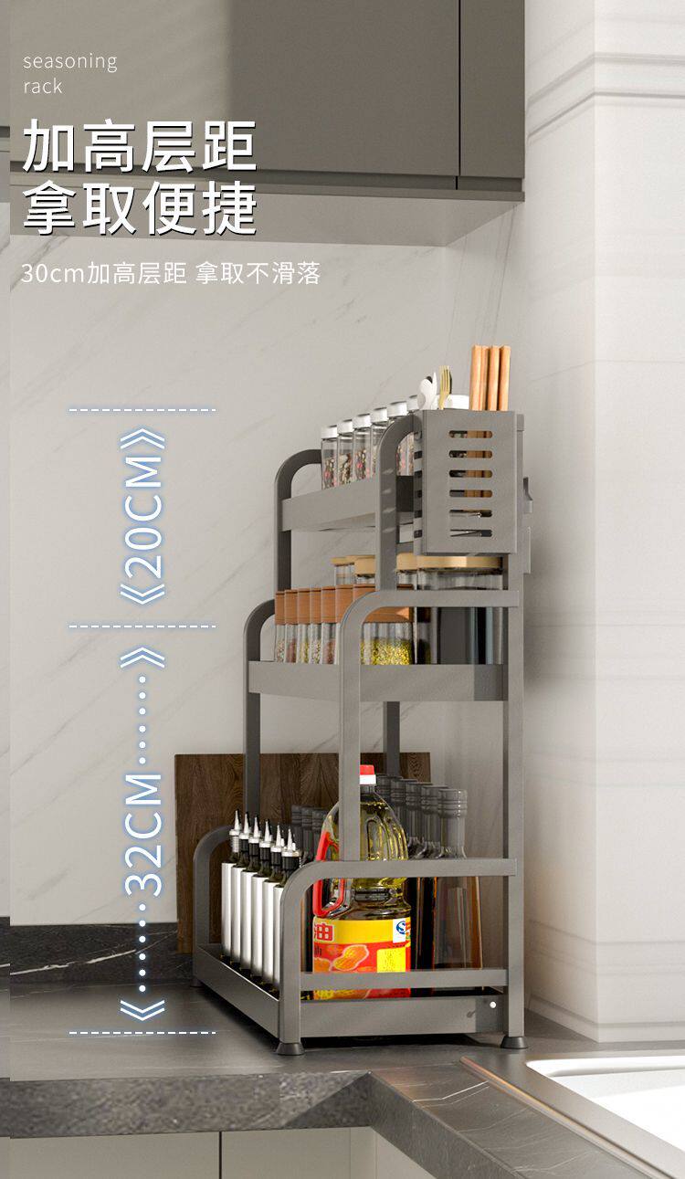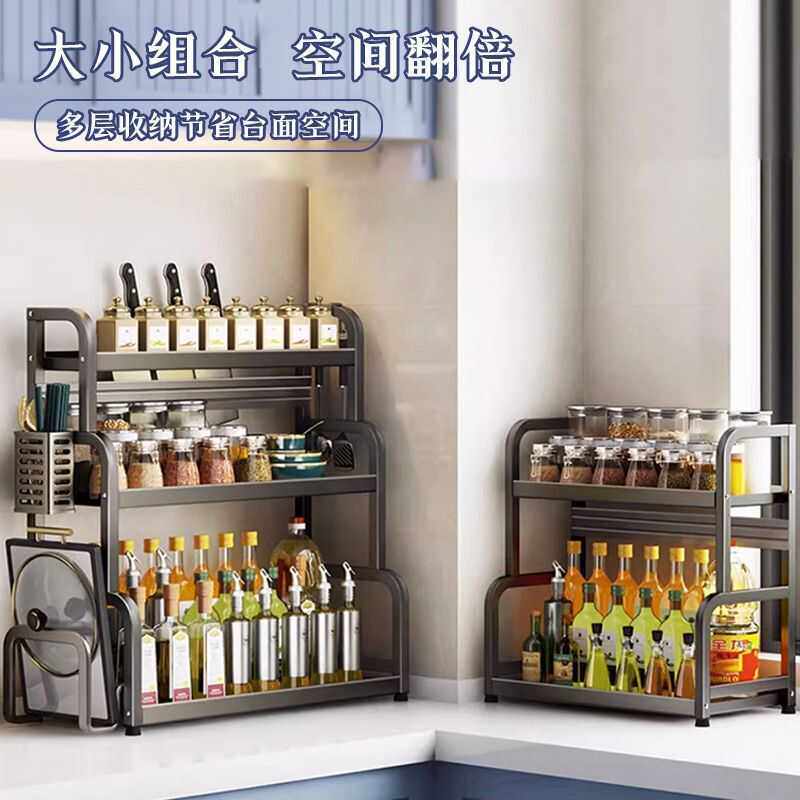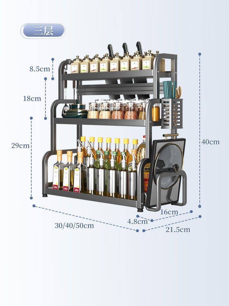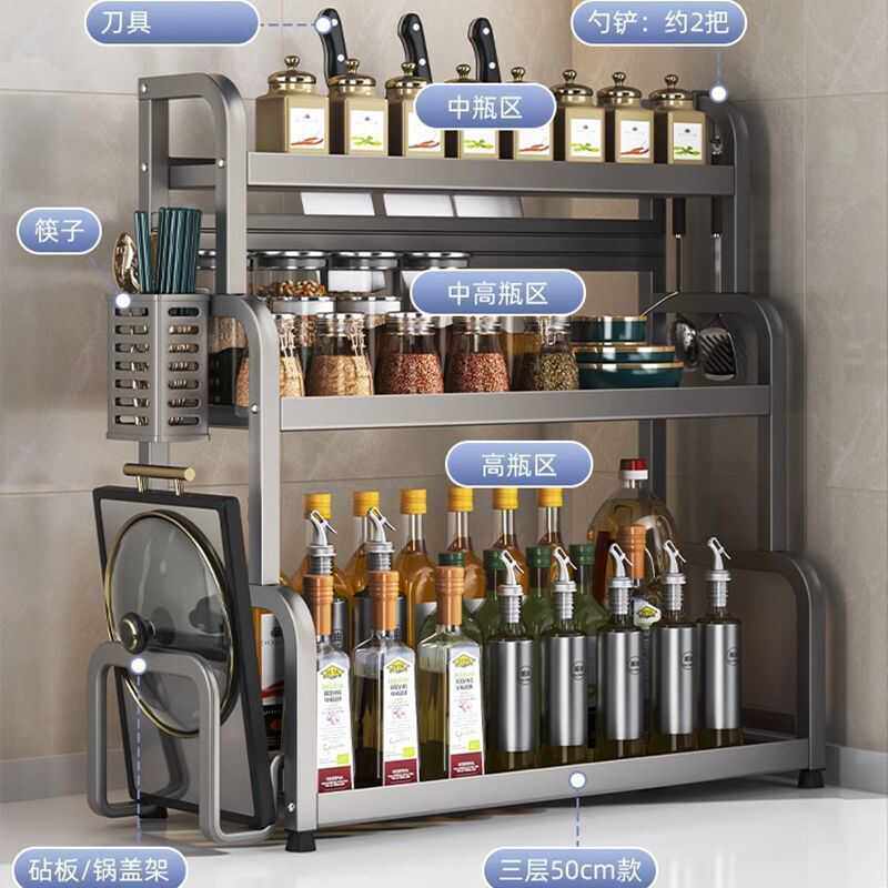 Кухонная стойка сгущенная сталь сталь стальной стойки, полка лезвия, многослойная стойка для бутылки с приправами Многофункциональная стойка для хранения