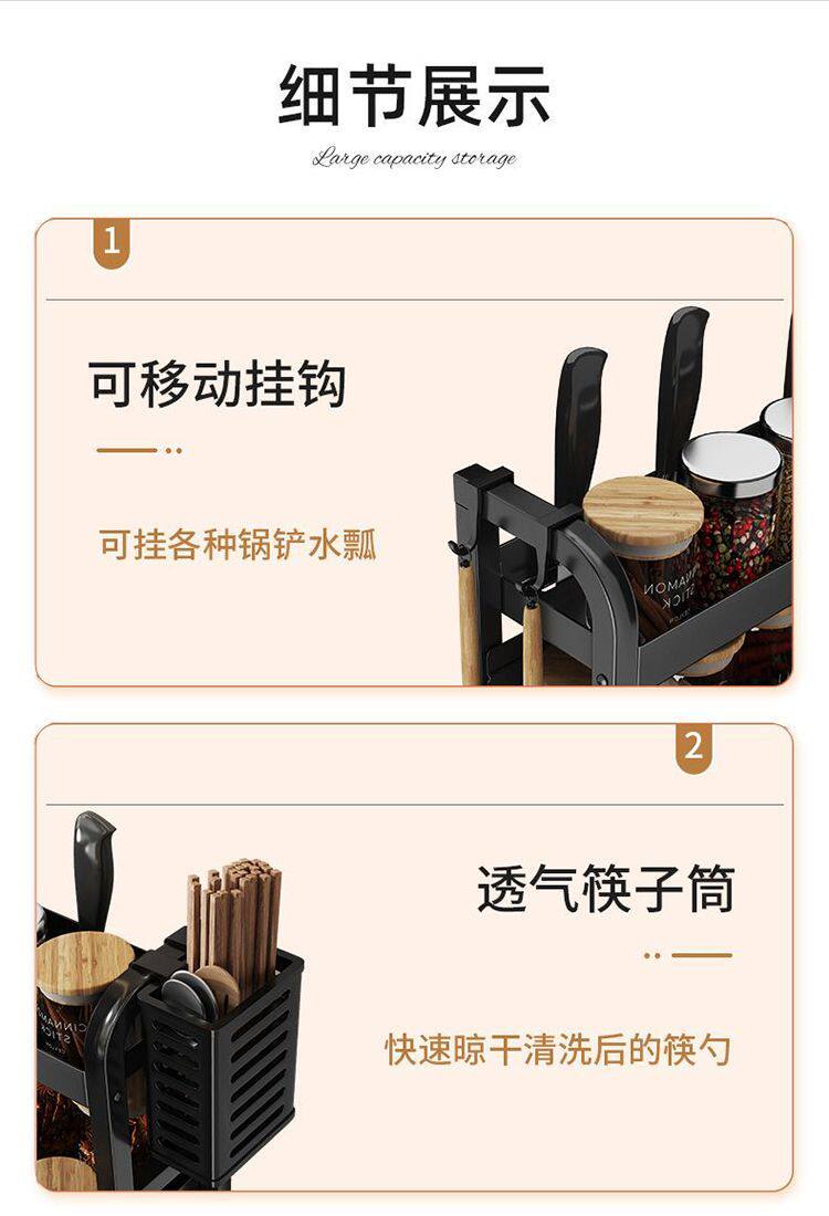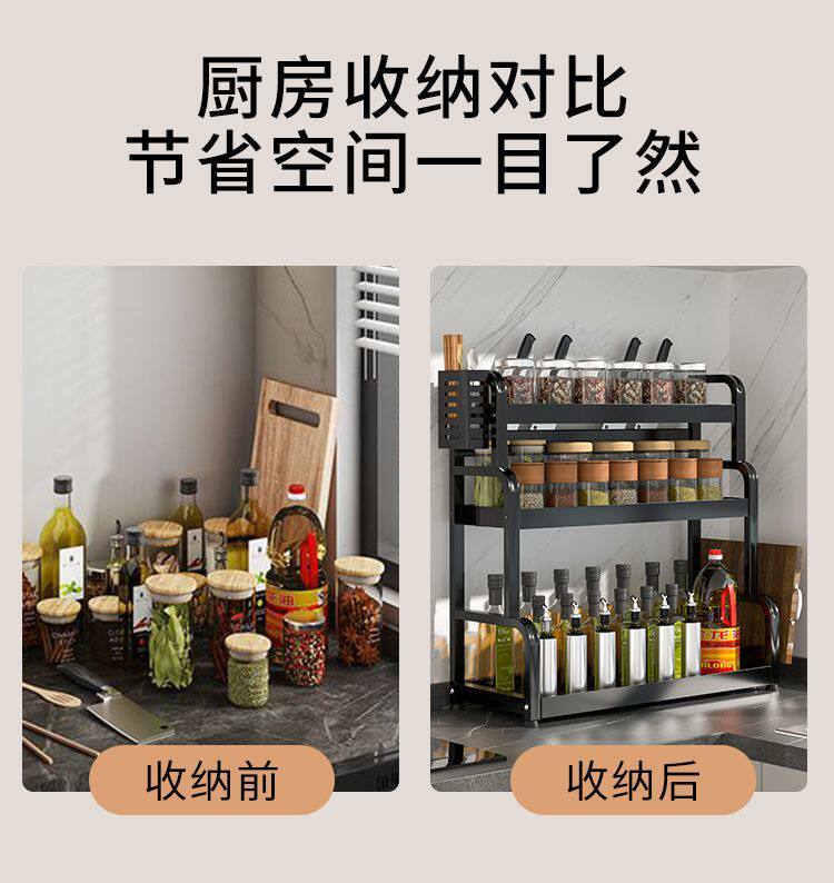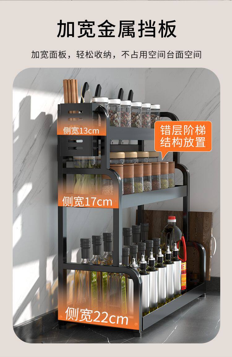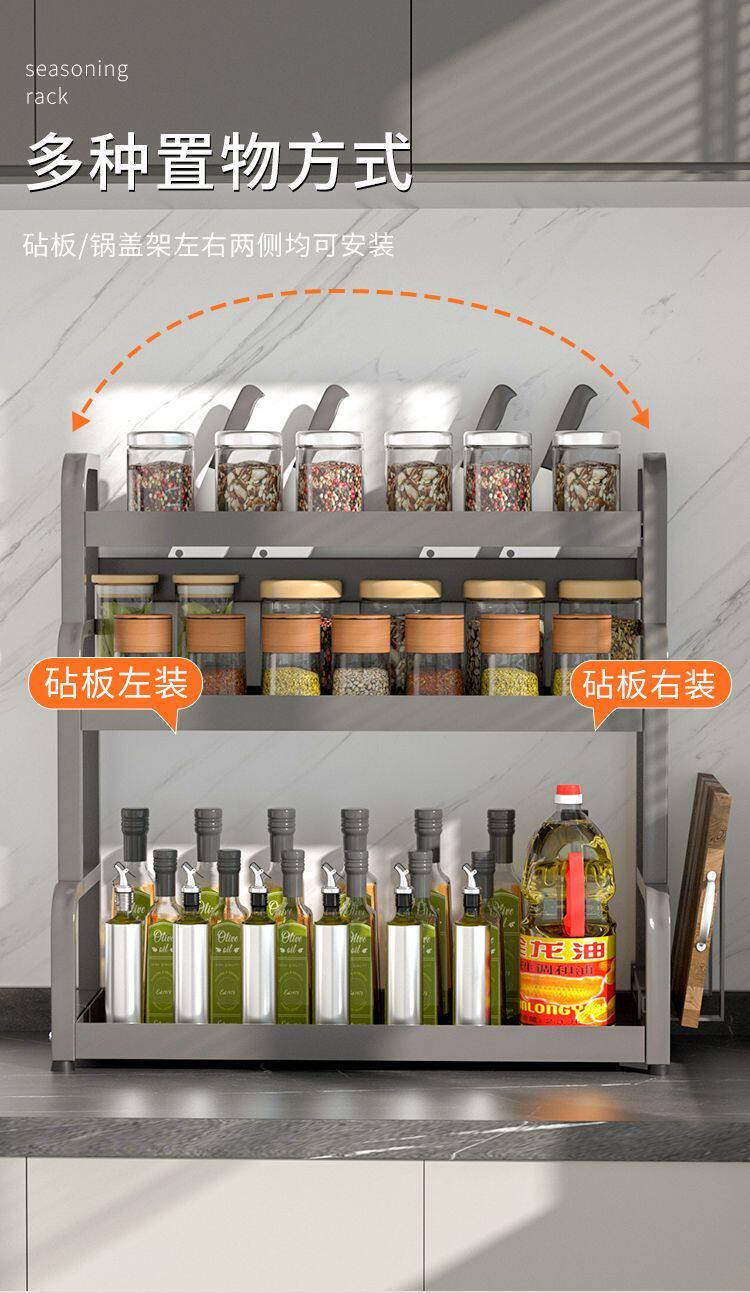 Кухонная стойка сгущенная сталь сталь стальной стойки, полка лезвия, многослойная стойка для бутылки с приправами Многофункциональная стойка для хранения