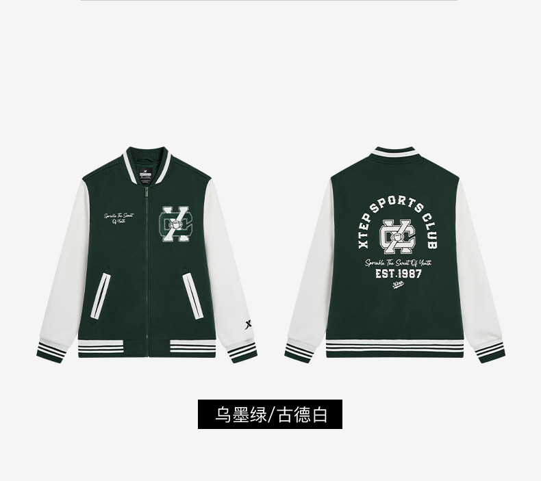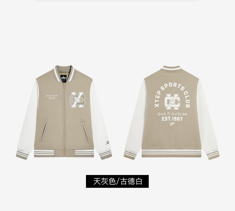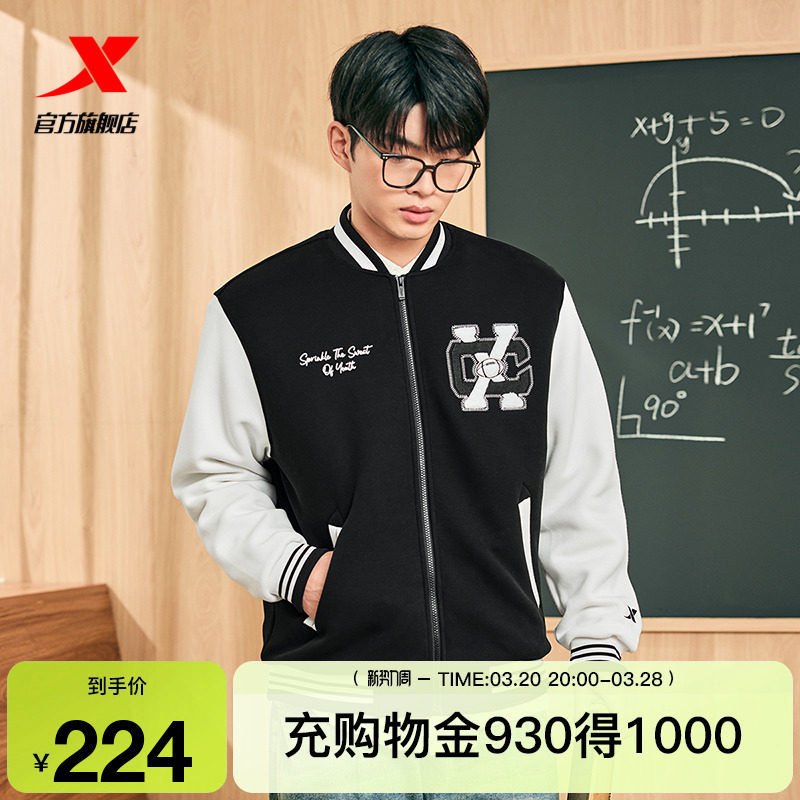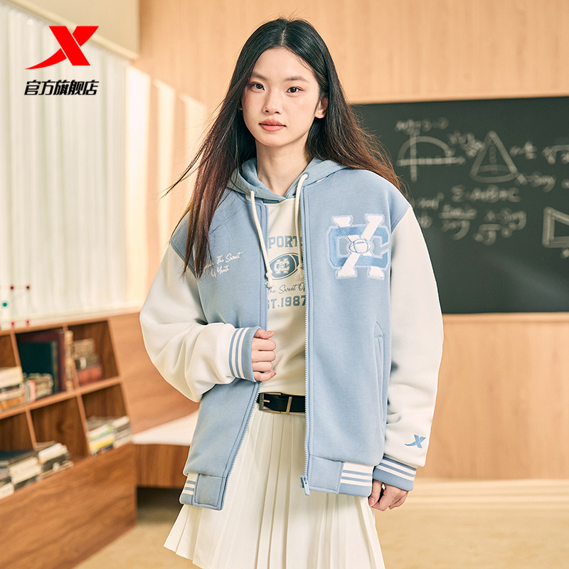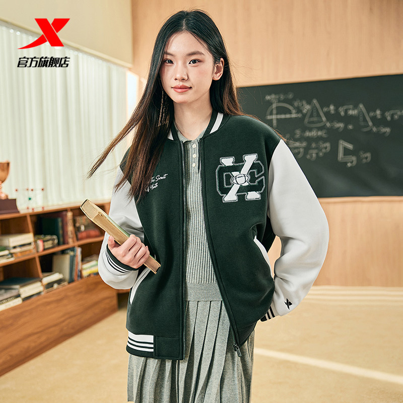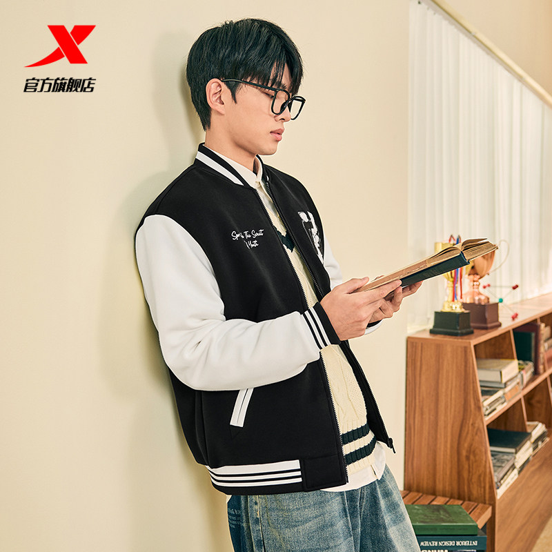 Xtep, мужская куртка, ретро бейсбольная тонкая толстовка для влюбленных, пуховик, спортивный костюм, 2024 года, осенняя, свободный крой