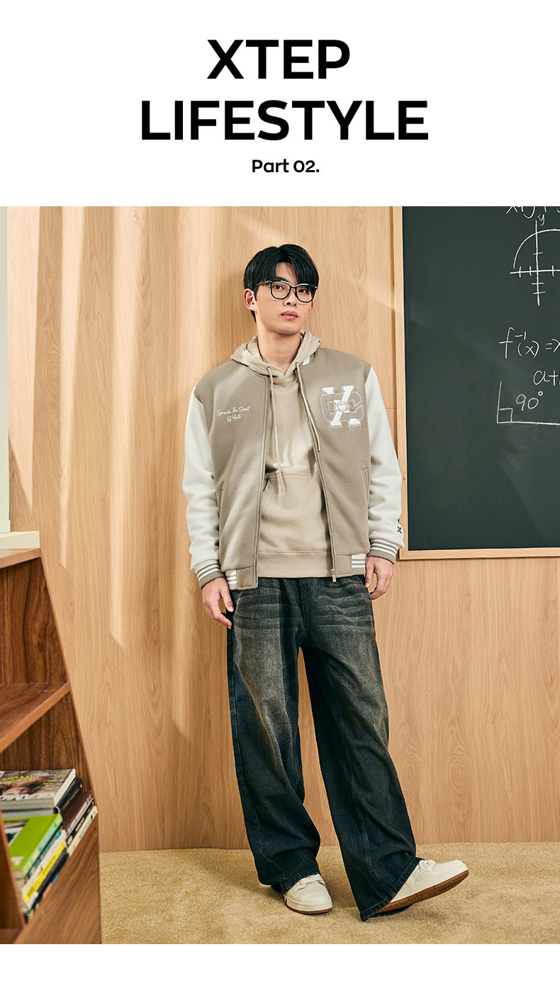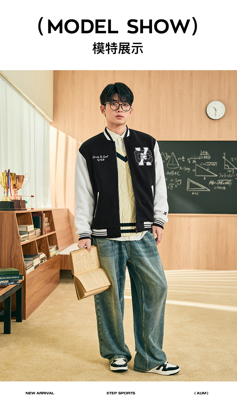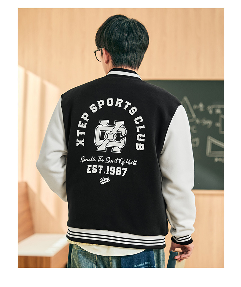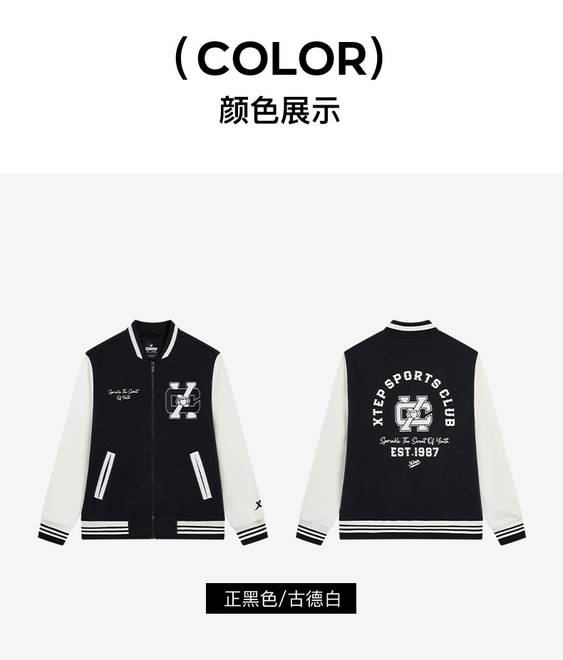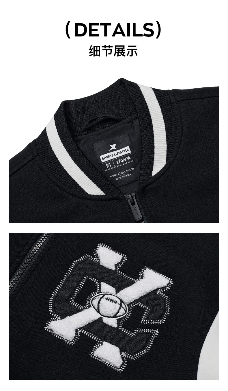 Xtep, мужская куртка, ретро бейсбольная тонкая толстовка для влюбленных, пуховик, спортивный костюм, 2024 года, осенняя, свободный крой