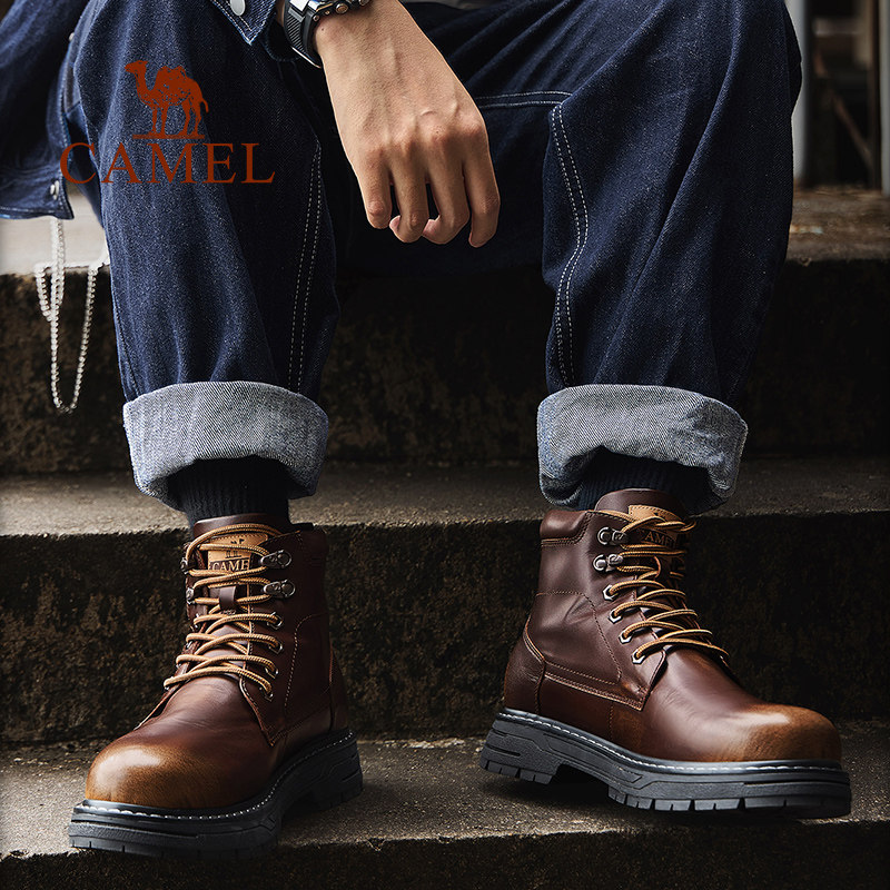 [Wang Junkai та же модель] Camel 2024 New Martin Boots Мужские ретро -ретро -высокие высокие высокие высокообороны
