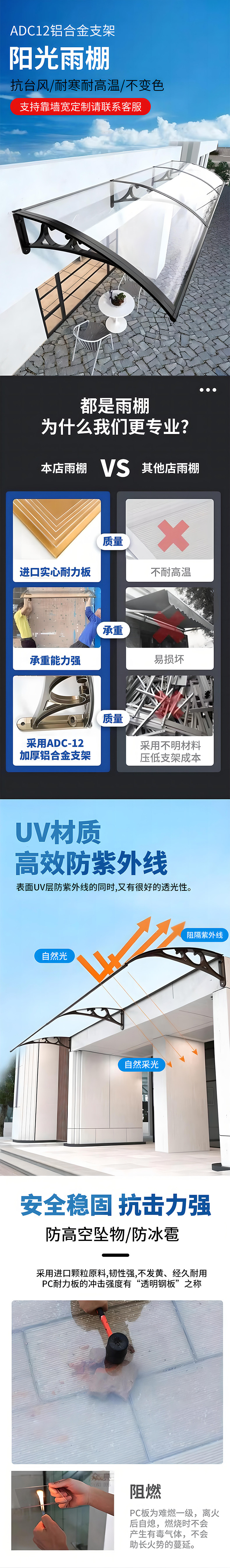 Карнизный чехол от дождя, усиленный утолщенный кронштейн, защита для окон, балкон, прозрачная печатная плата, наружная дверь, навес для двора, навес от дождя