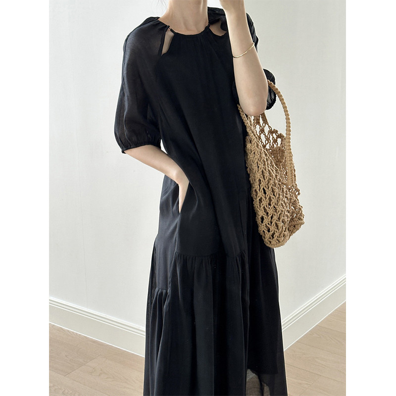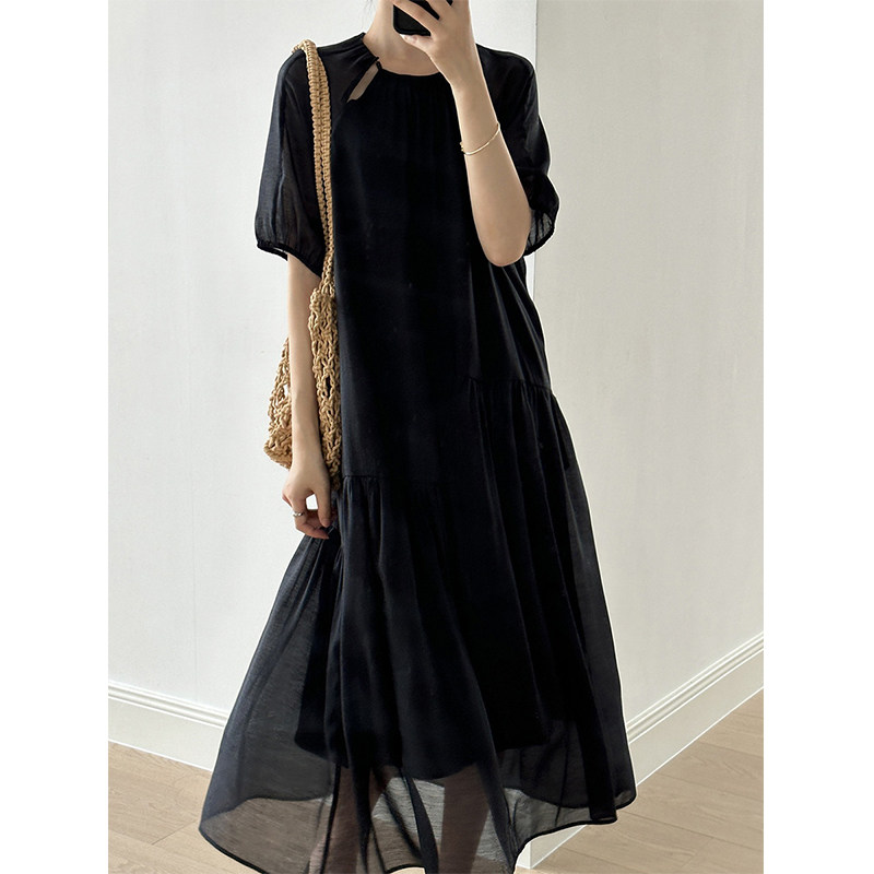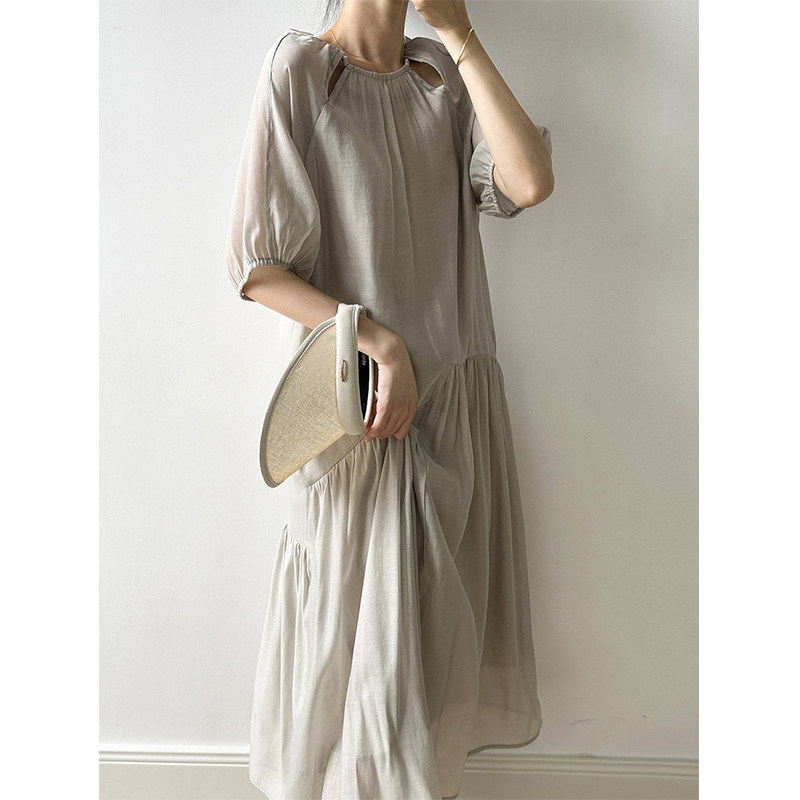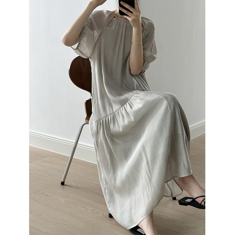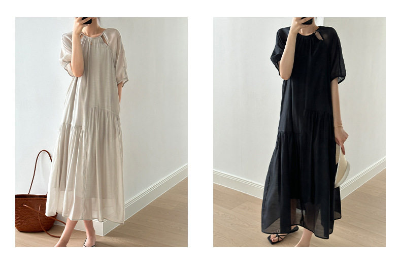 Светлосменое 45 четырех -пятое -точечное рукав шелковое платье Женское ленивое датчик релаксации интеллектуалы щедрые и приличные юбки