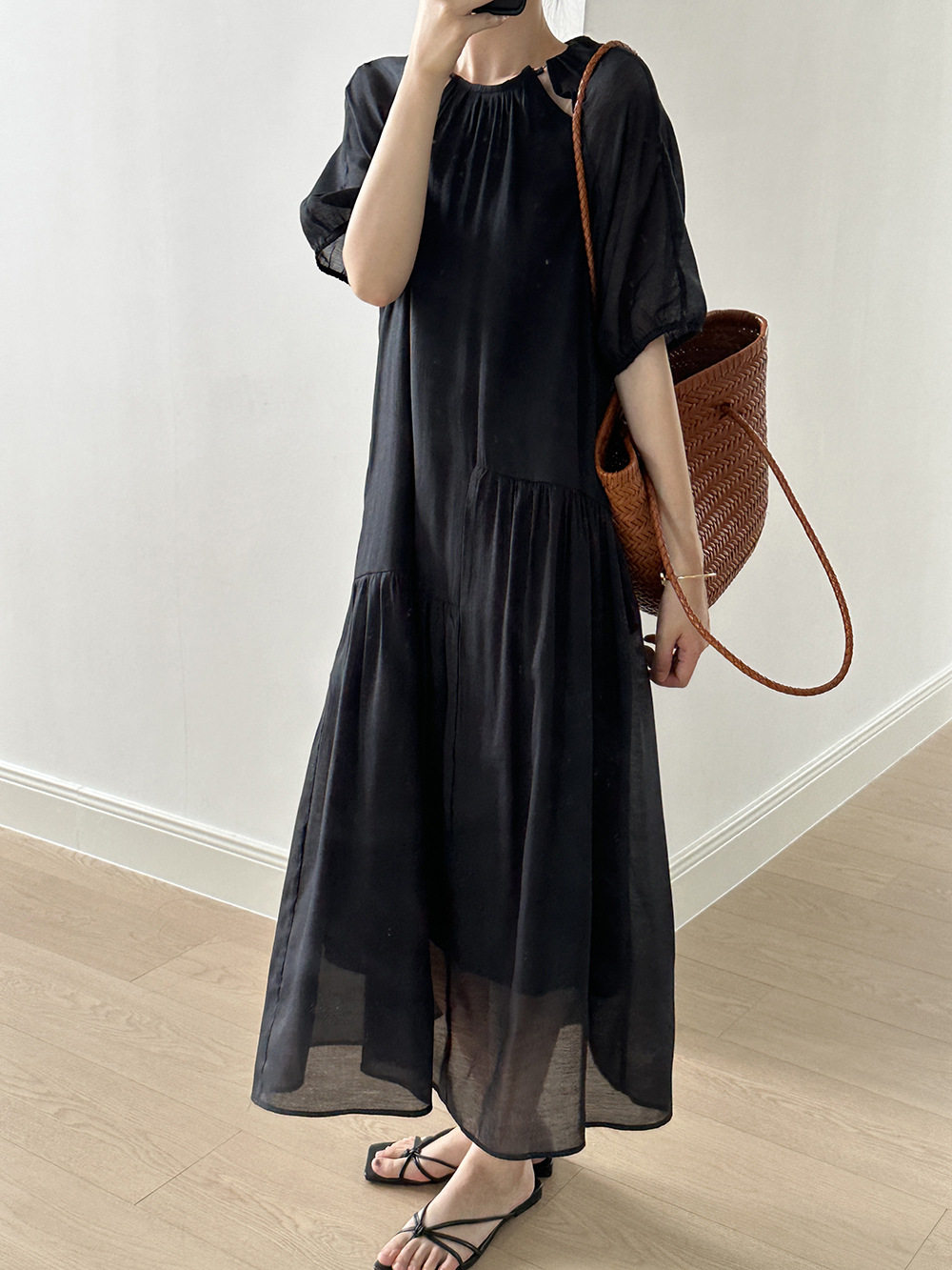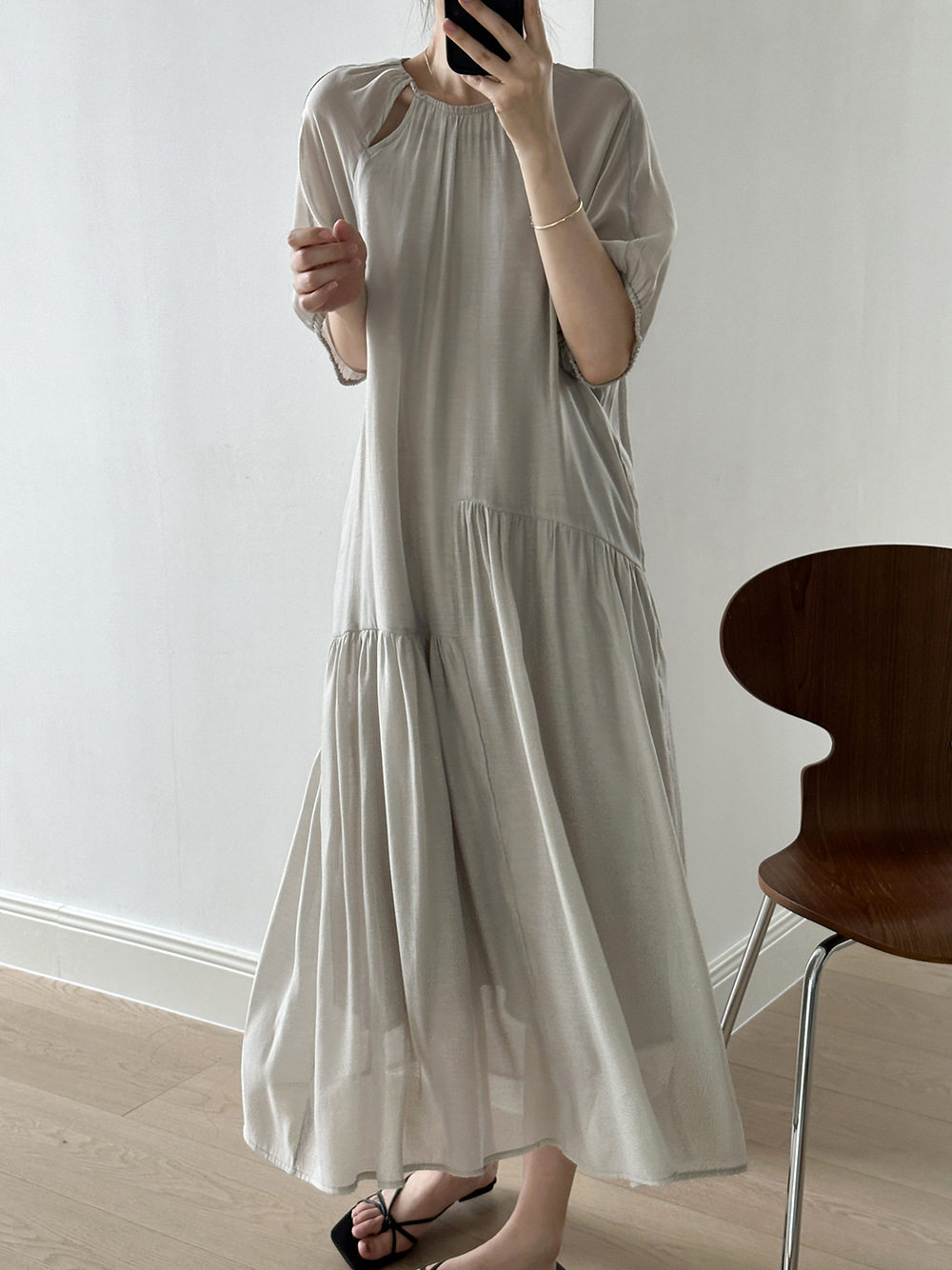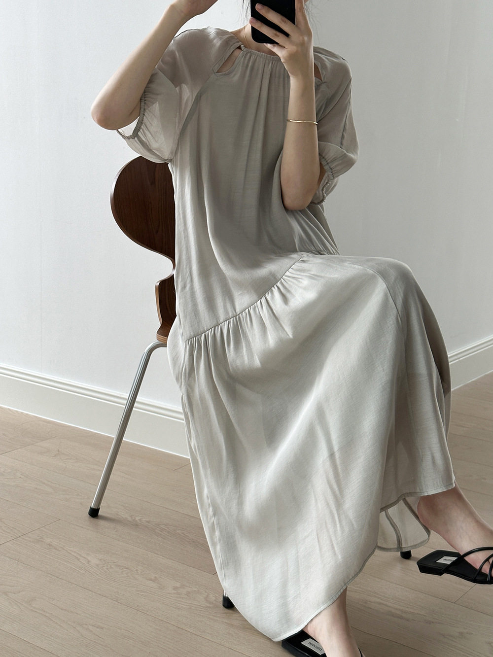 Светлосменое 45 четырех -пятое -точечное рукав шелковое платье Женское ленивое датчик релаксации интеллектуалы щедрые и приличные юбки