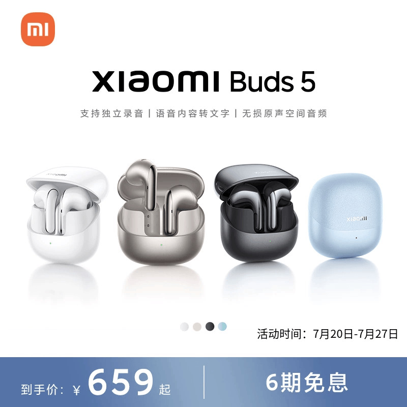 Xiaomi XiaomiBuds5 Bluetooth-гарнитура, полувкладыши, независимая запись голоса в текст, беспроводная проводная гарнитура
