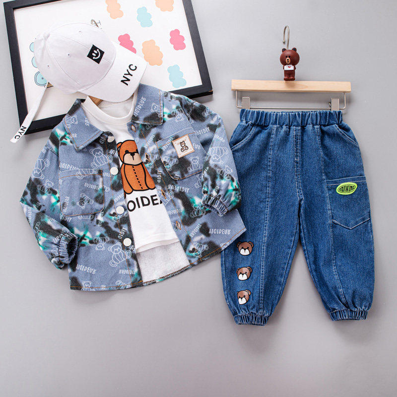 Детский демисезонный джинсовый комплект для мальчиков, 3 предмета, в западном стиле, 1-3 лет