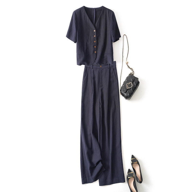 Дышащий пиджак классического кроя, костюм, штаны, комплект, легкий роскошный стиль, короткий рукав, высокая талия