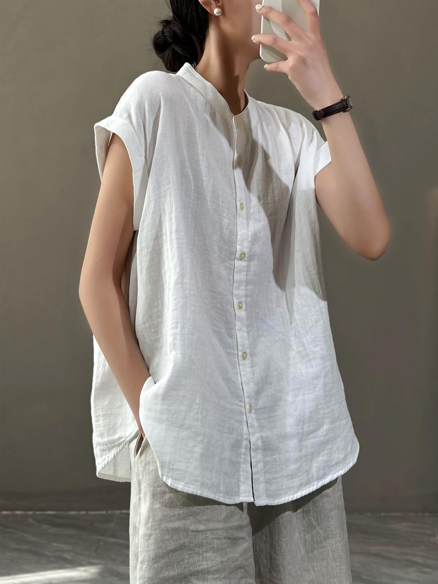 Летняя рубашка, модный жилет без рукавов, в западном стиле, большой размер, из хлопка и льна
