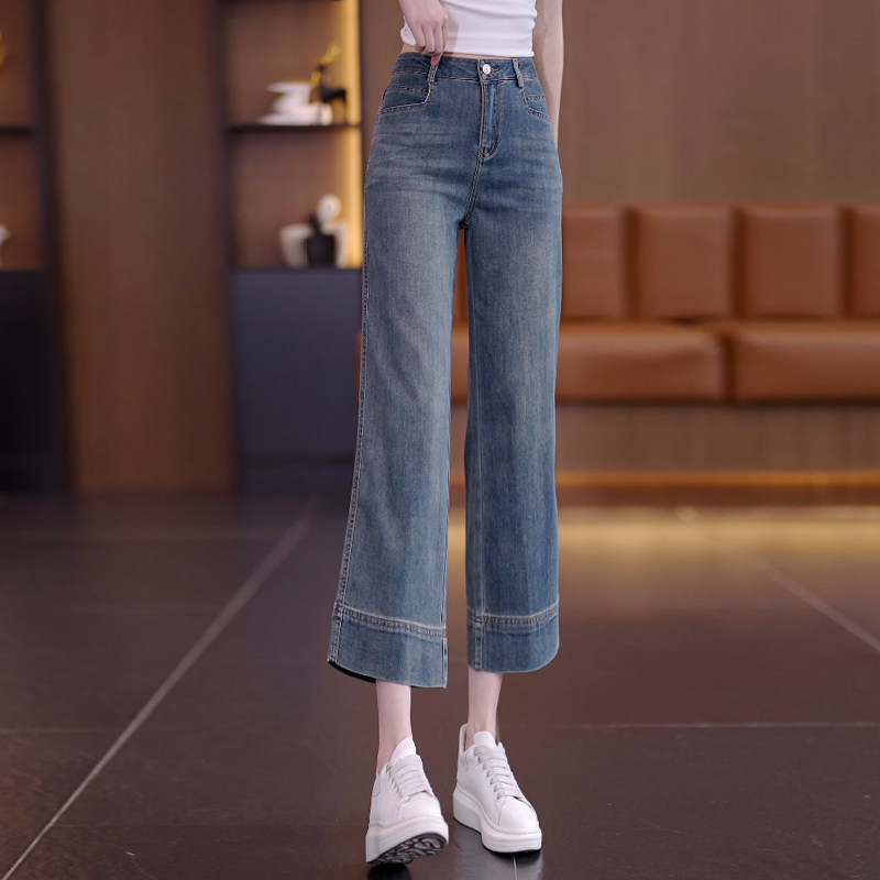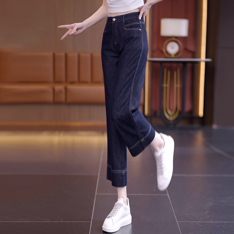 Темно-синие джинсы, летние тонкие штаны для отдыха, 2025 года, высокая талия, подходят для подростков, свободный прямой крой