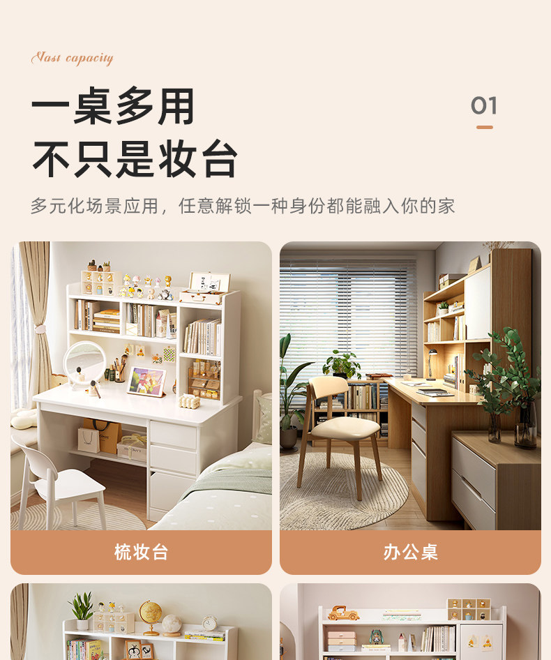 Настольный столик для макияжа «два в одном», компьютерный стол для макияжа, встроенный в спальню, современный простой, 2025, новое хранилище для хранения