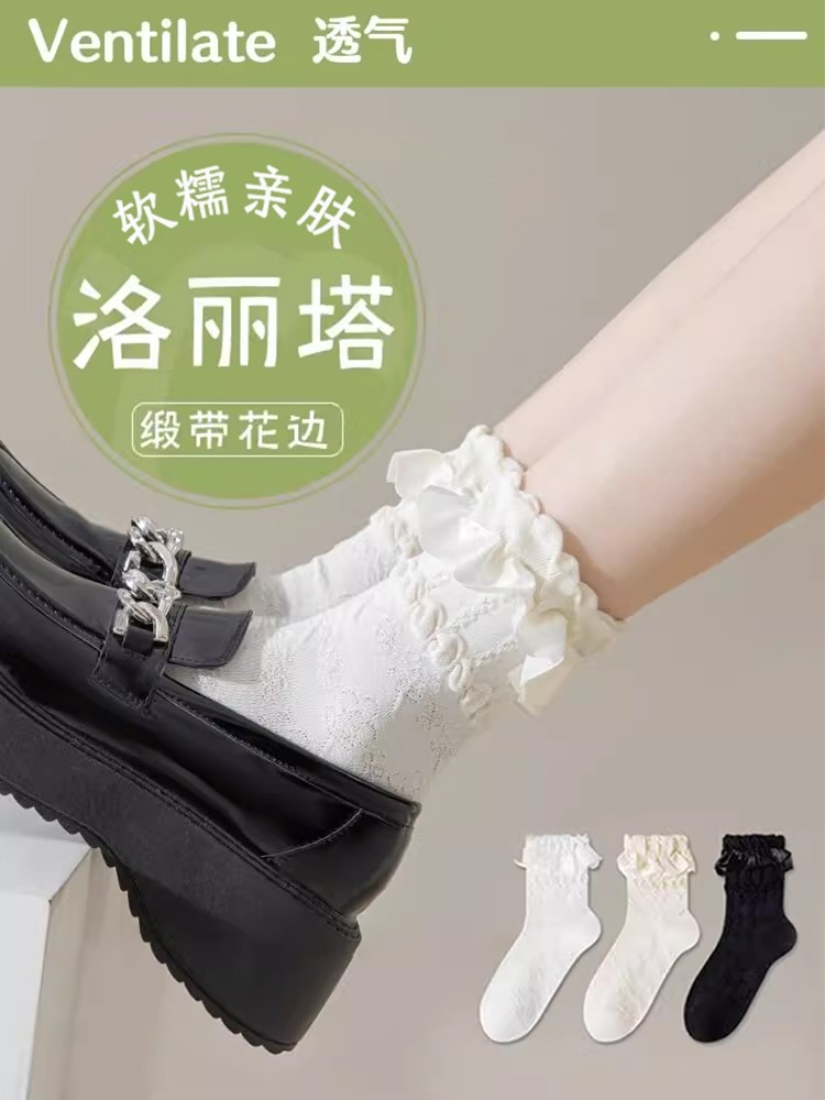 Lolita кружевные чулки для женских тонких белых кружев