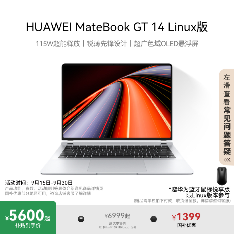 [Национальная субсидия] Huawei Matebook GT 14 Linux версия Core Ultra Naptop 115W Super Can выпустит Light and Light Student Office Office Officen
