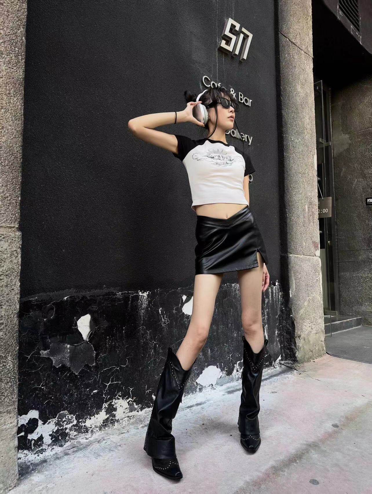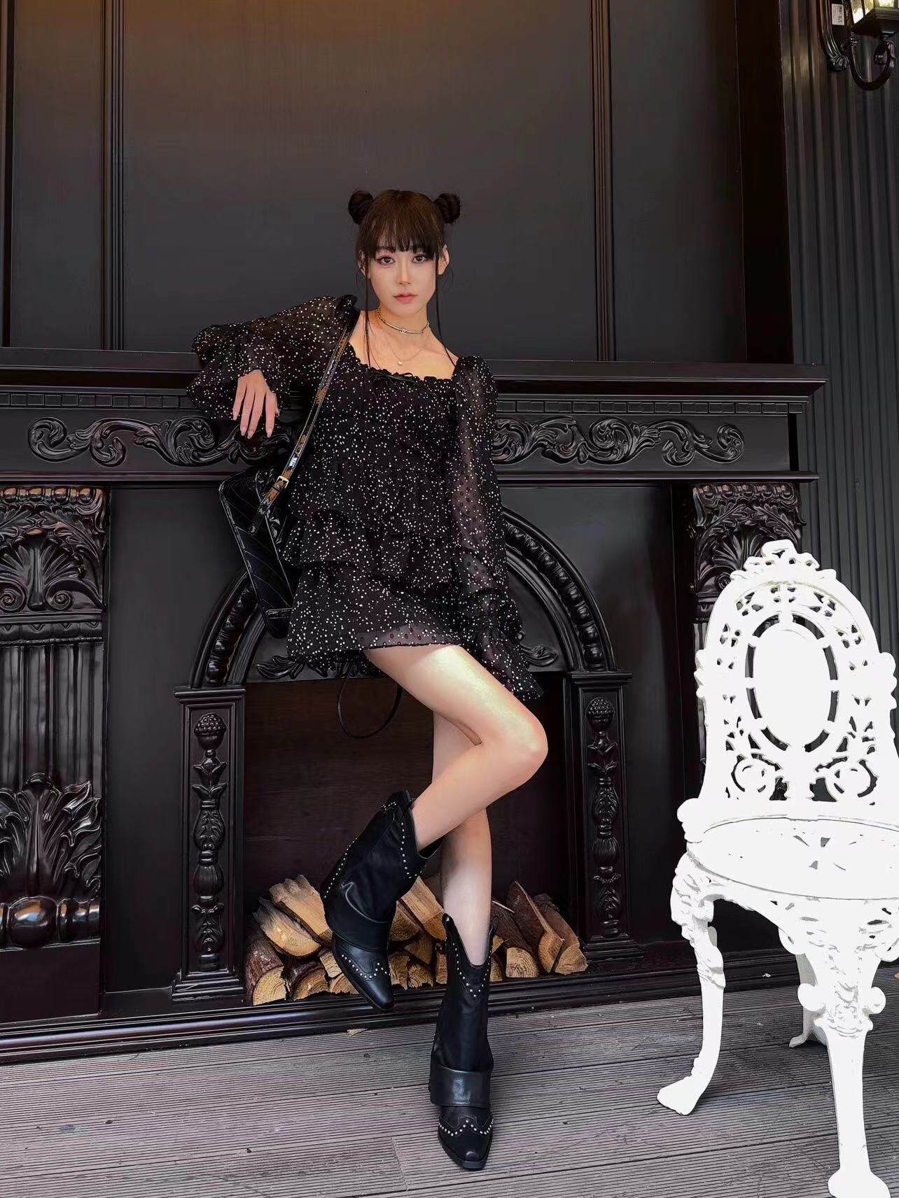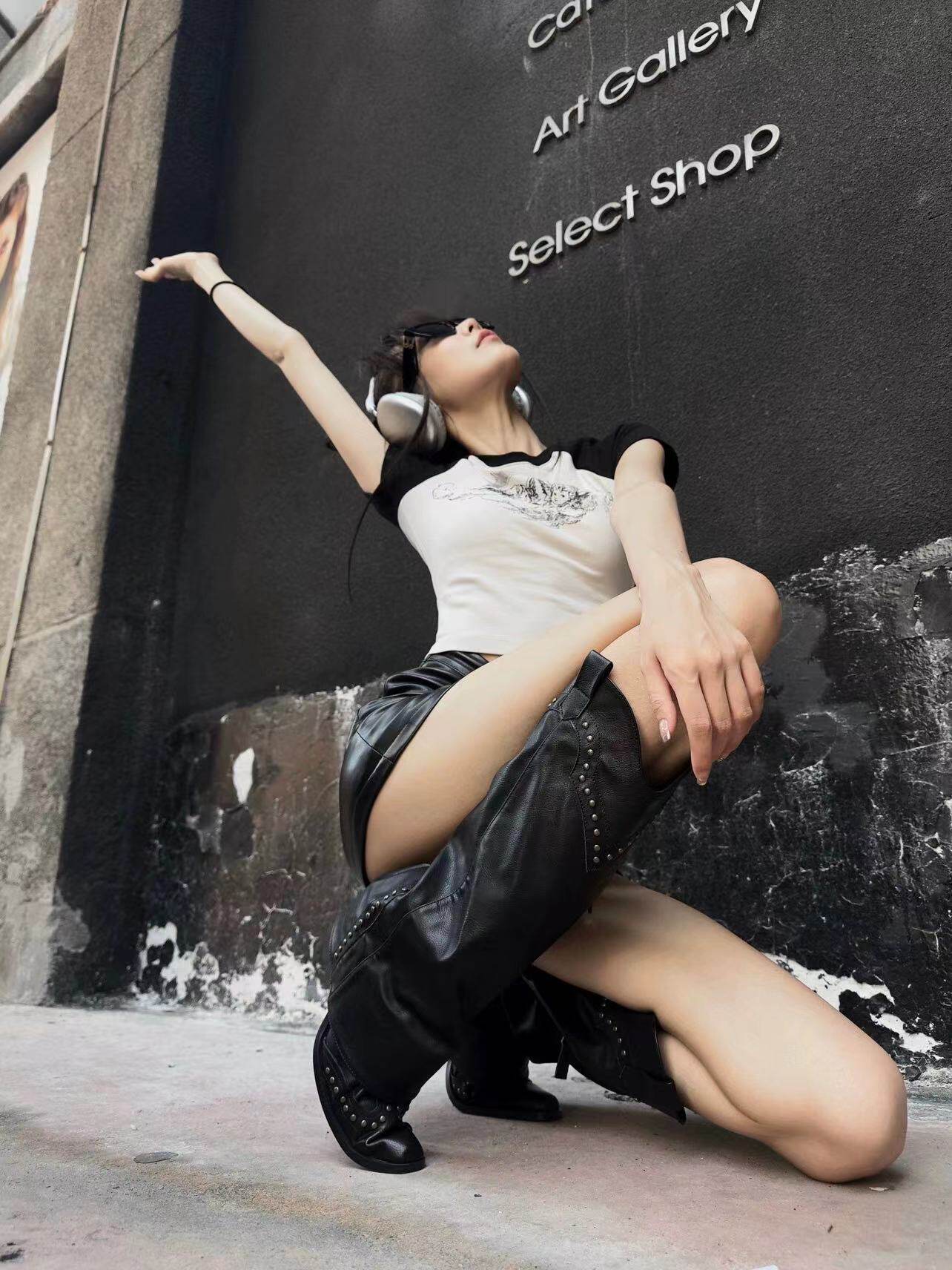 - Черные высокие сапоги