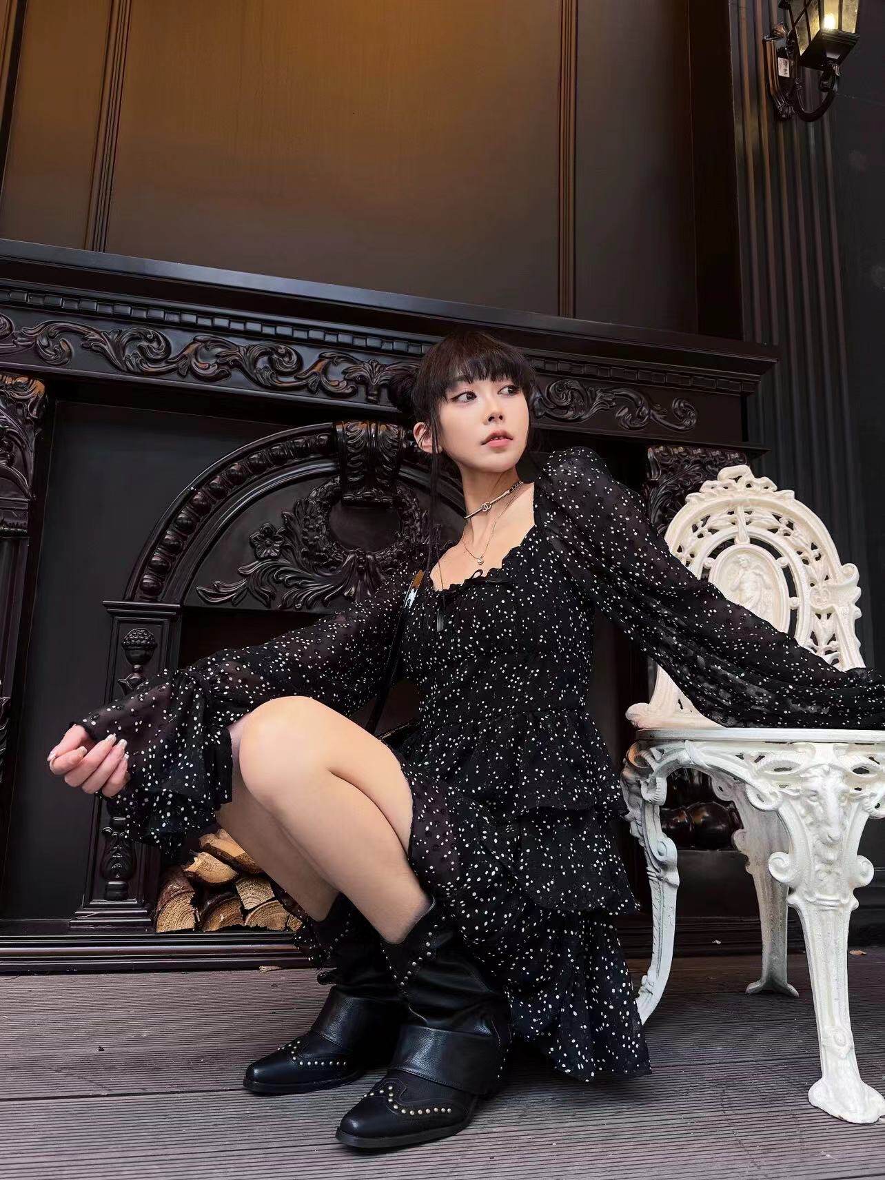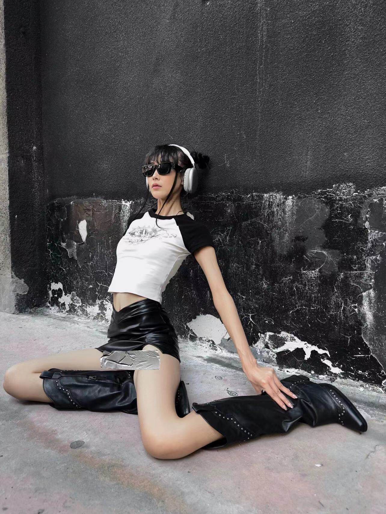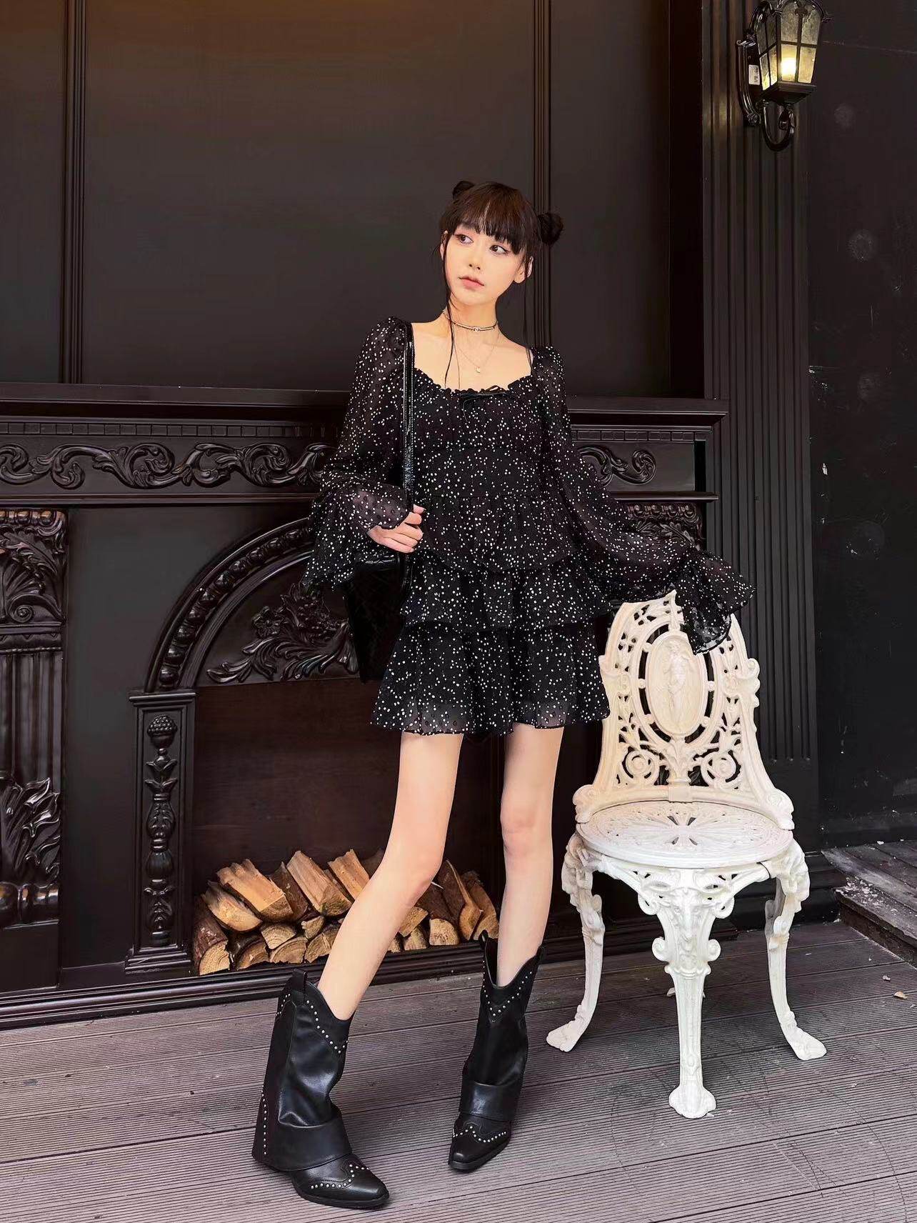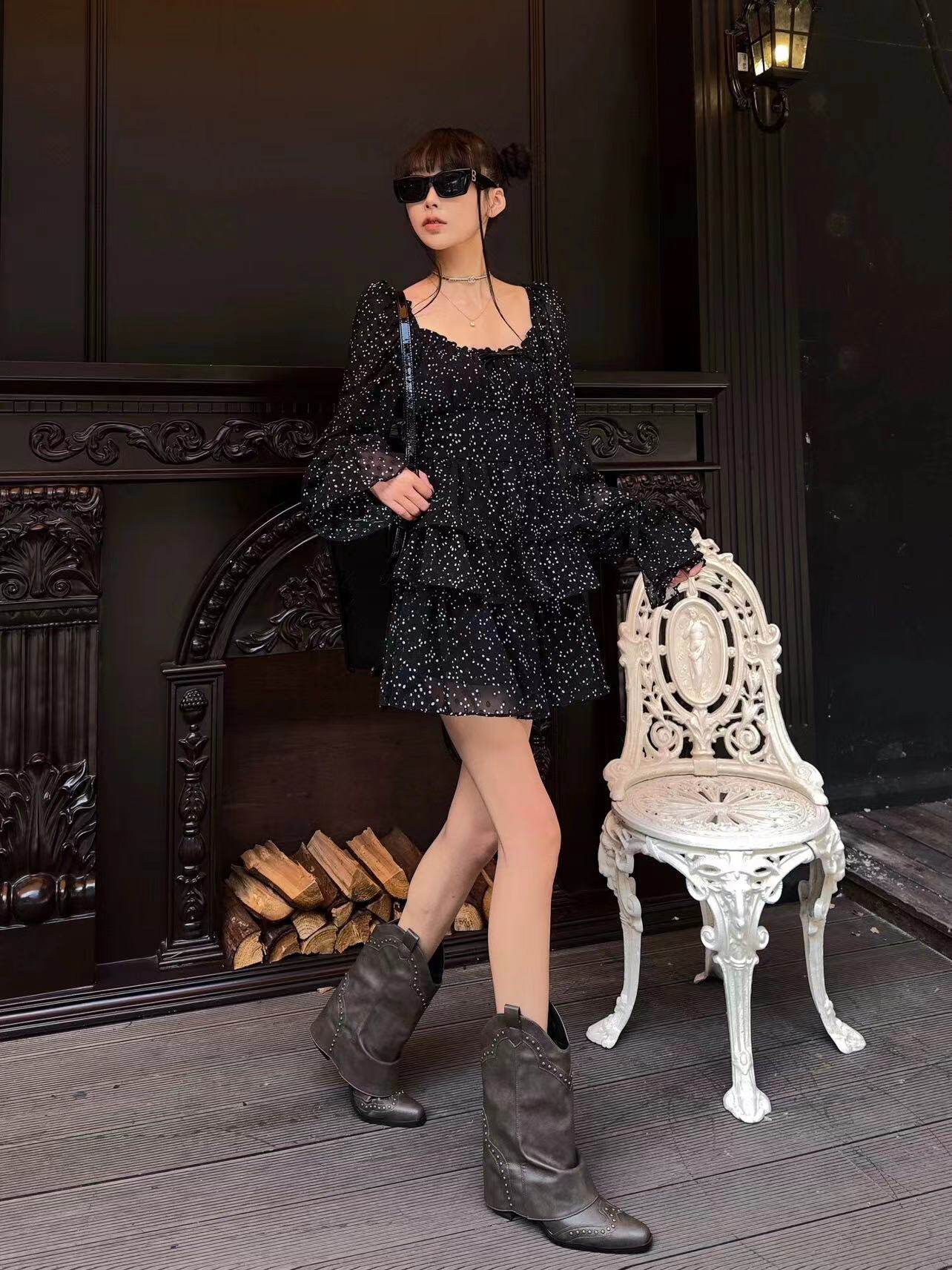 - Черные высокие сапоги