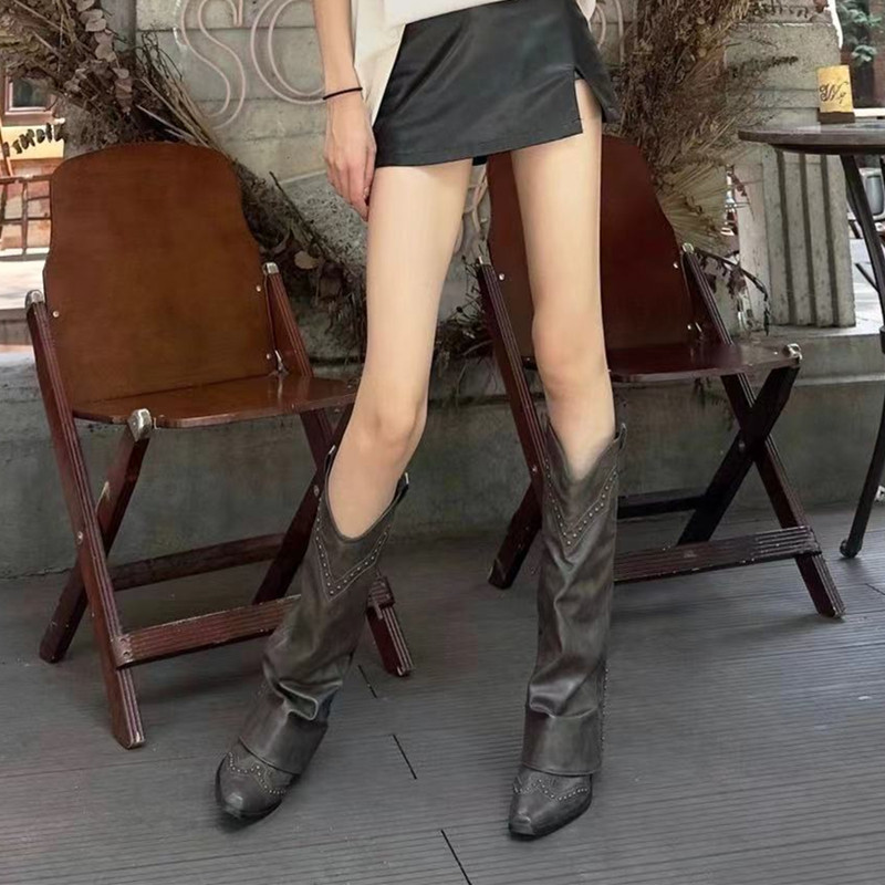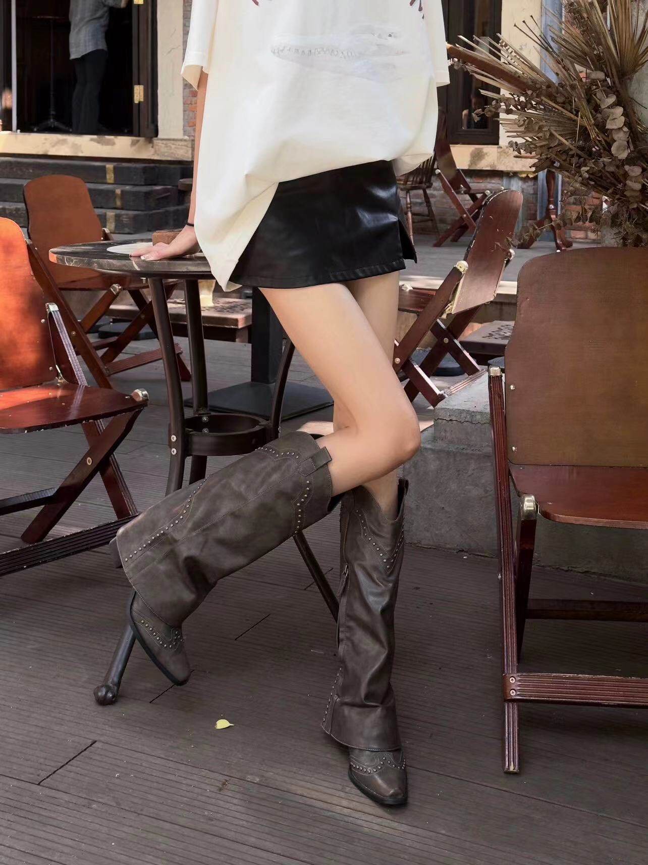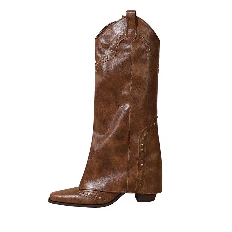 - Коричневые высокие сапоги