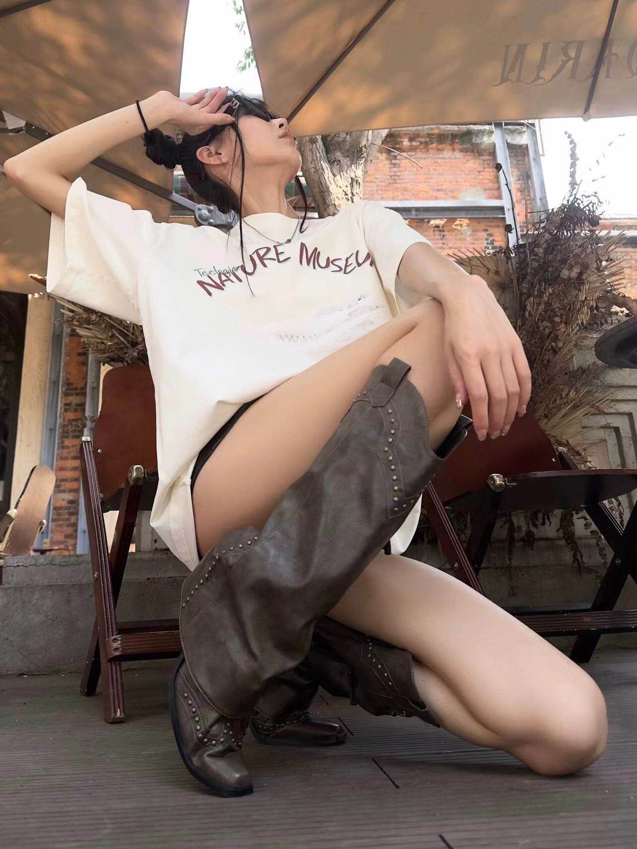 Джинсовые летние тонкие ретро штаны, ботинки, высокие сапоги