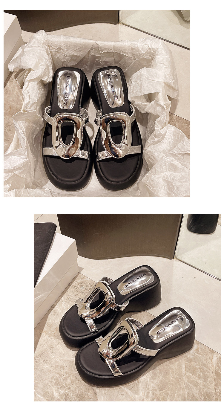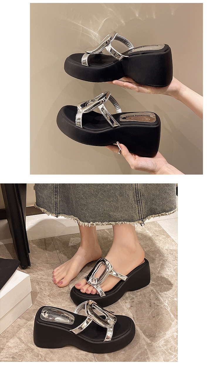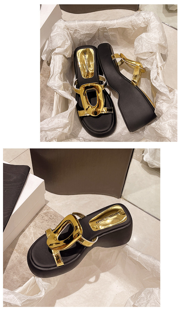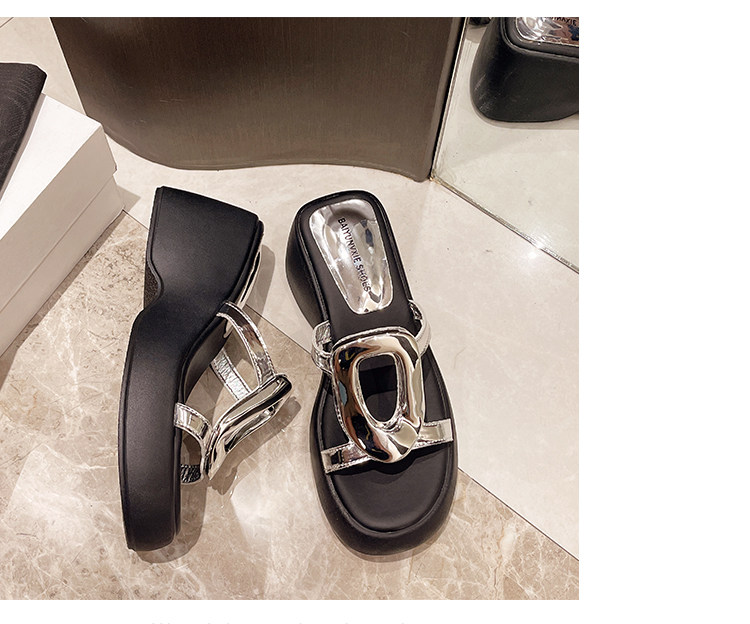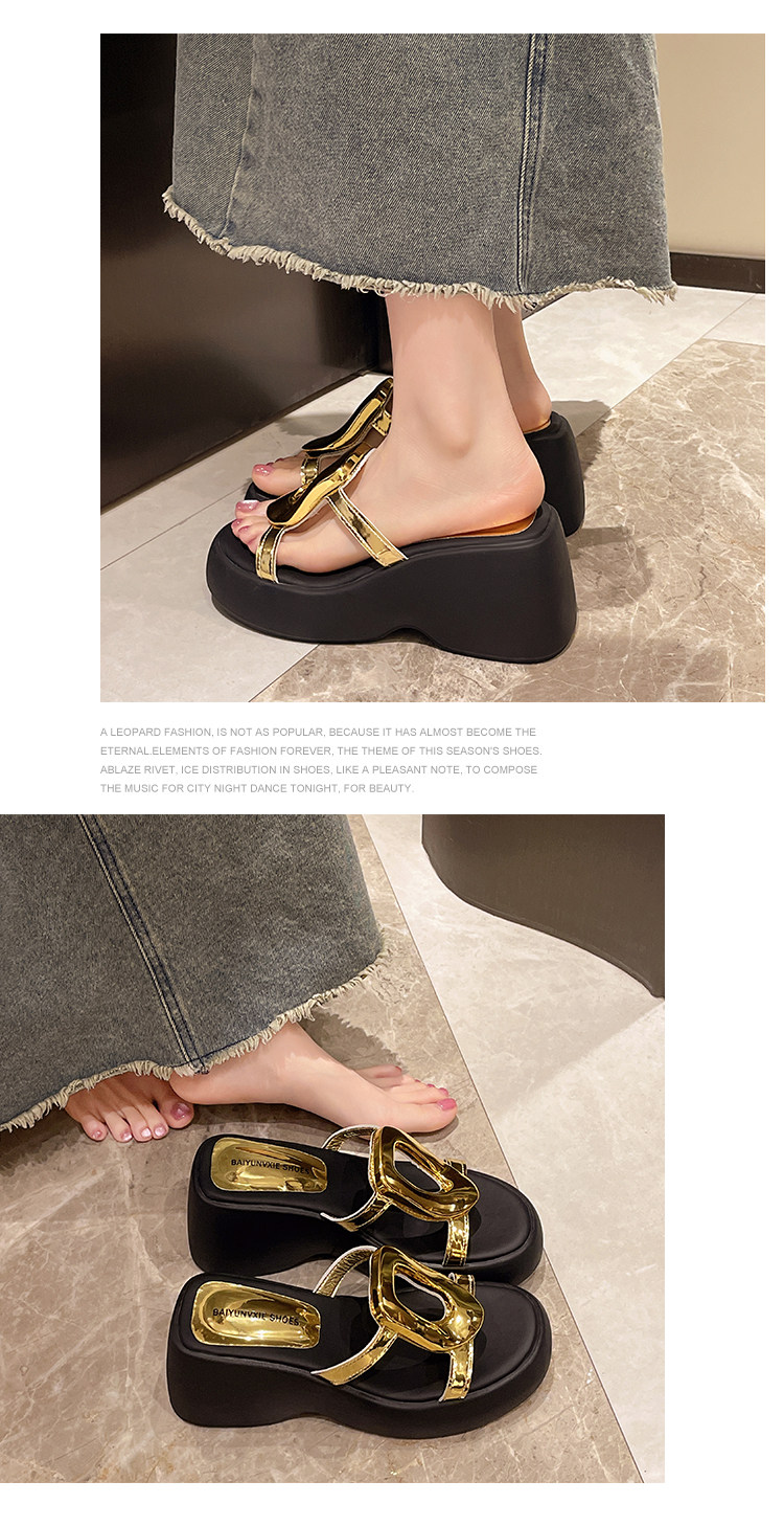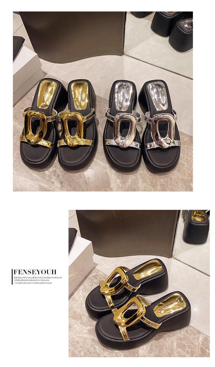 Высокие металлические летние дизайнерские тапочки на платформе на высоком каблуке, популярно в интернете