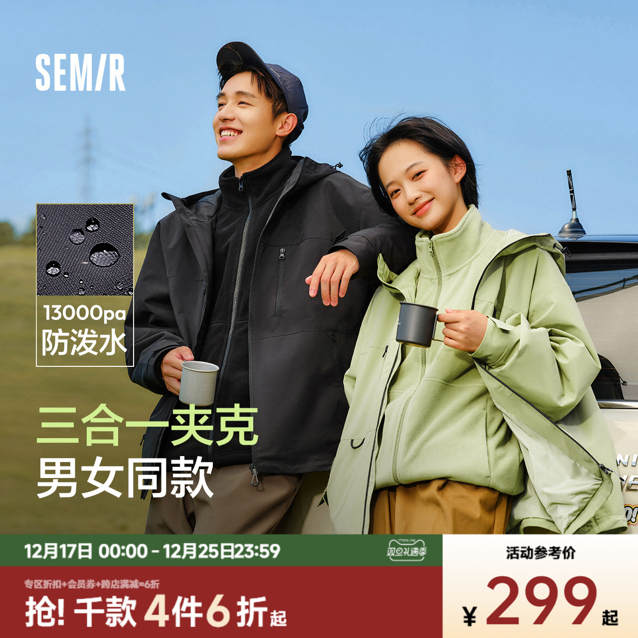 Semir, зимняя съемная дорожная ветрозащитная водонепроницаемая куртка подходит для мужчин и женщин, «три в одном»