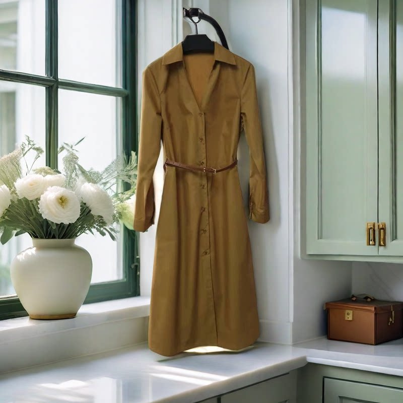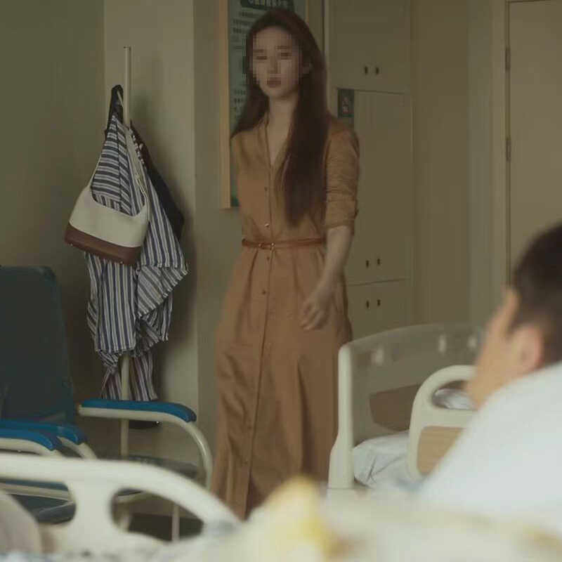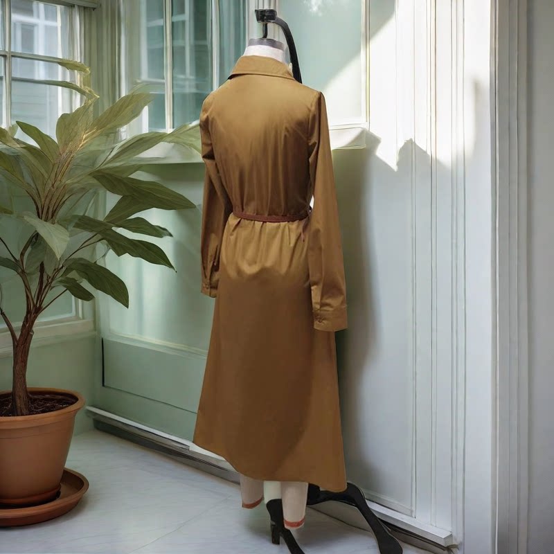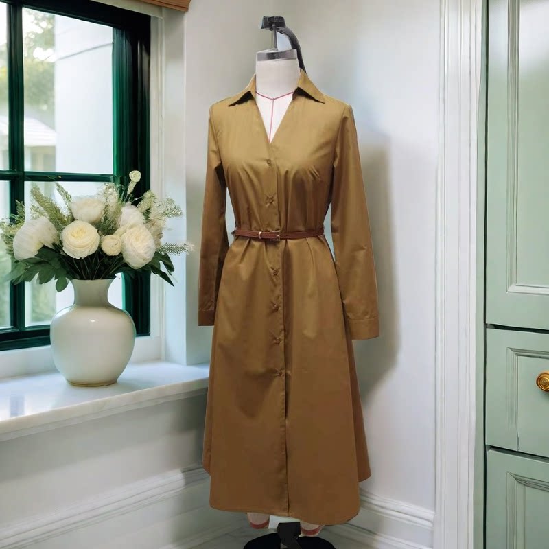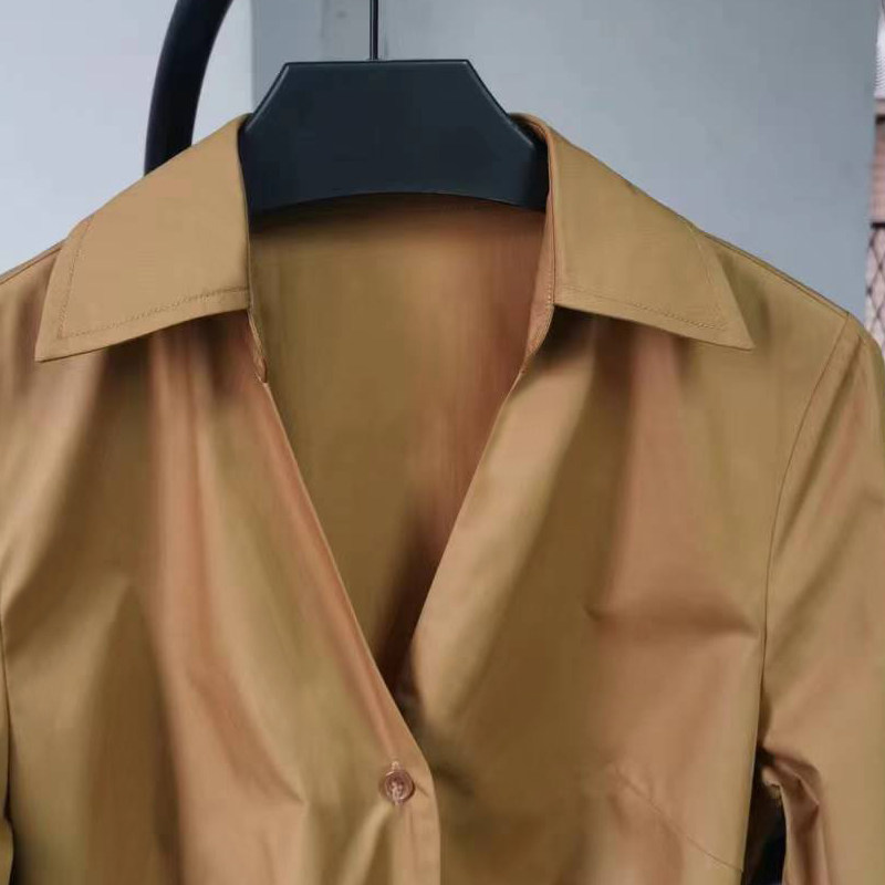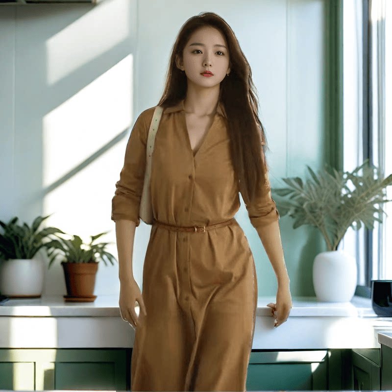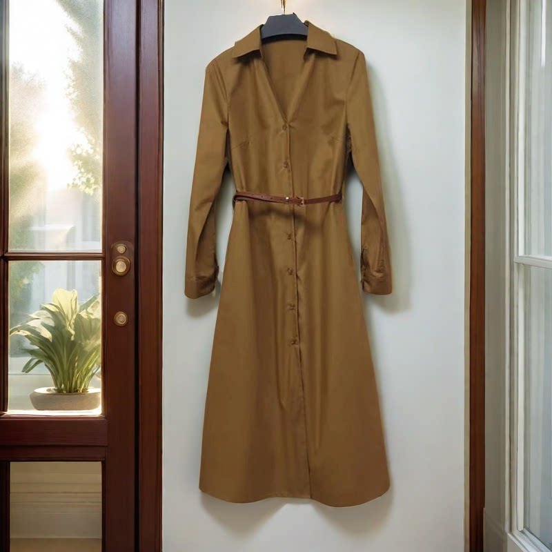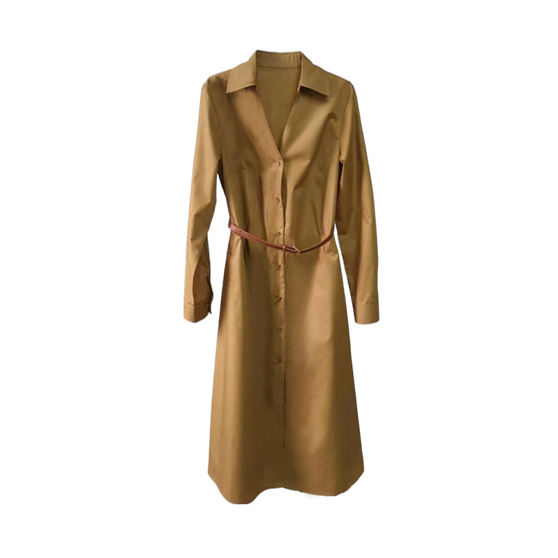 Коричневая летняя рубашка, платье, юбка, длинный модный ремень, простой и элегантный дизайн, средней длины
